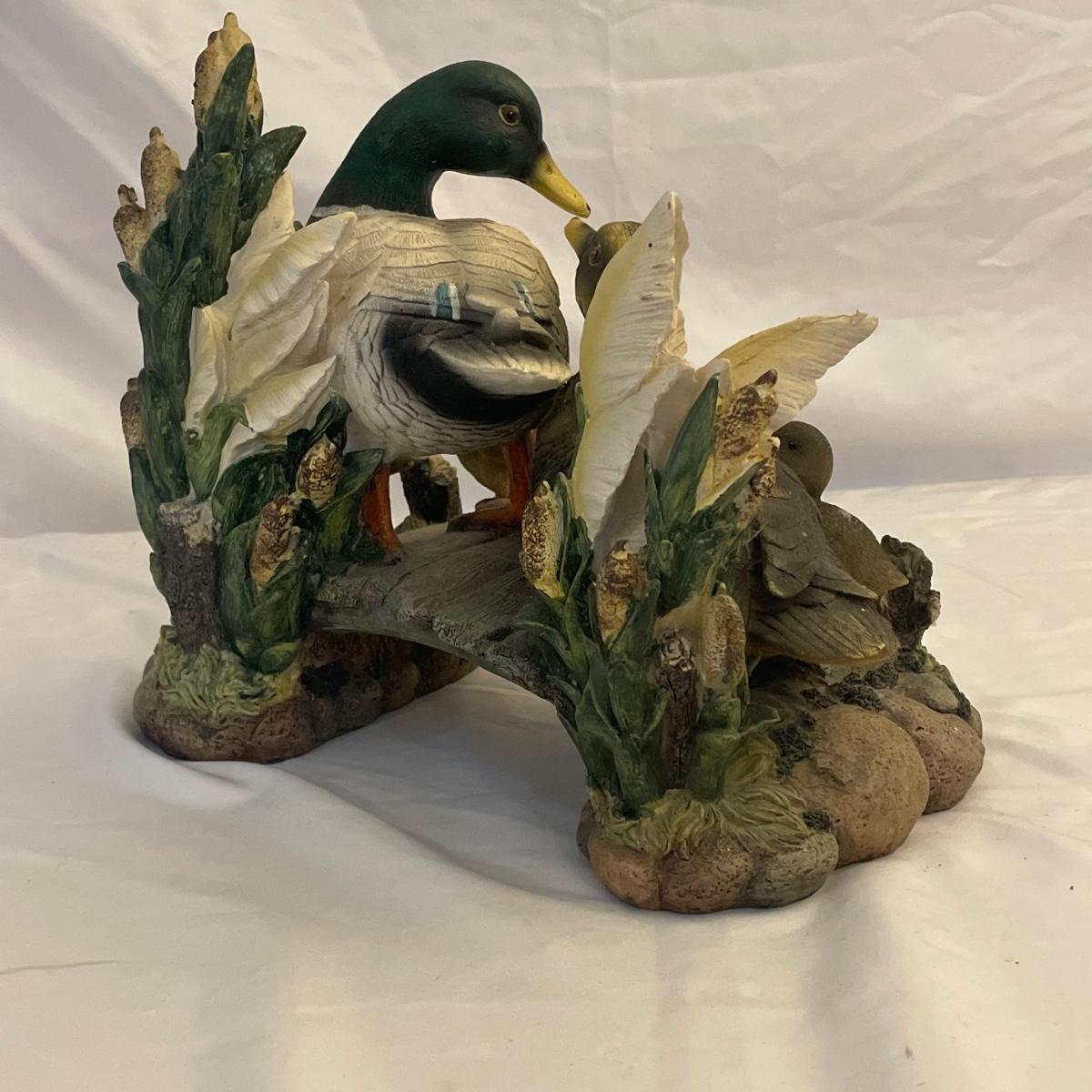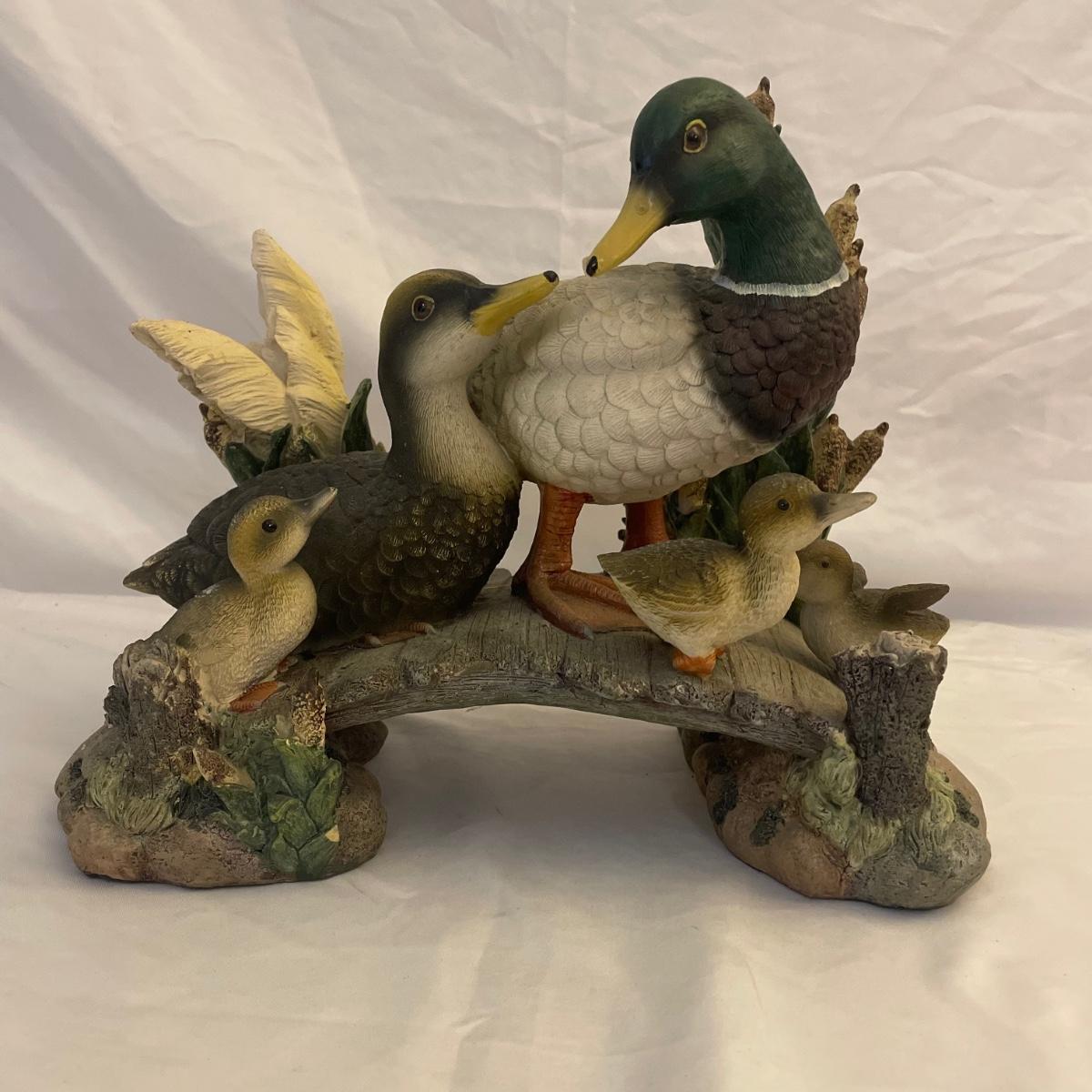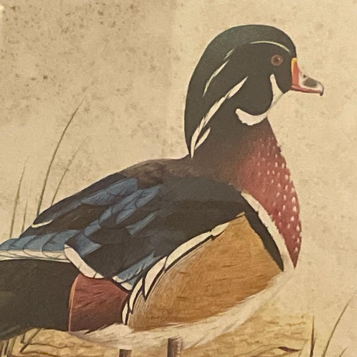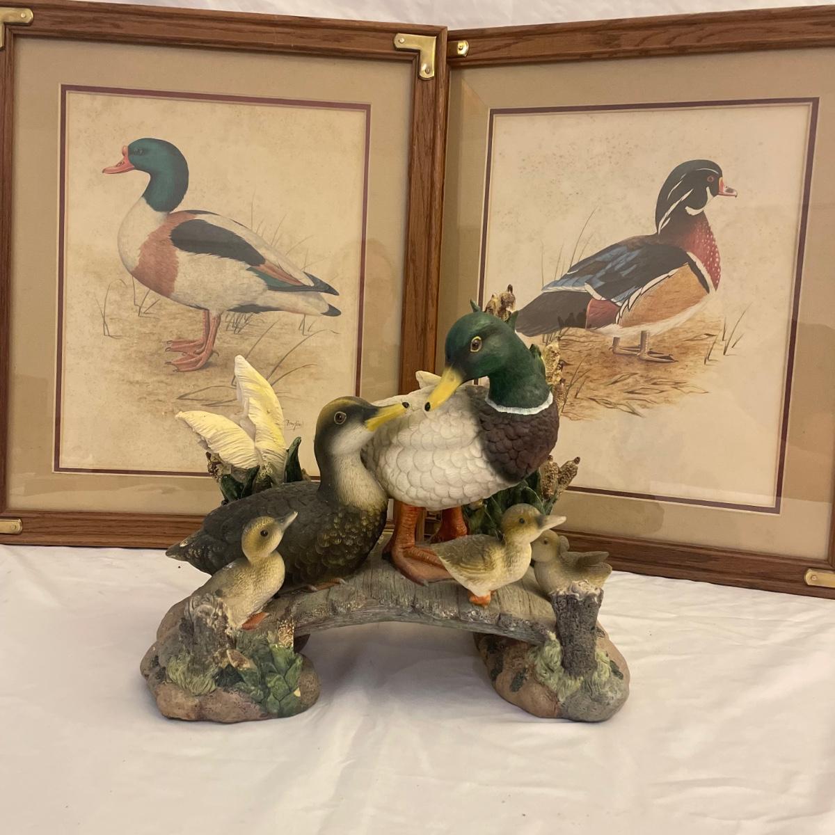 Don’t quack under the pressure of bidding for this un-bill-eavable lot! This lovely resin like duck statue stands 10” tall. We have paired it with two duck prints by Stephen Gayford that come in matching wood frames with brass accents; they measure 20” x 17”.