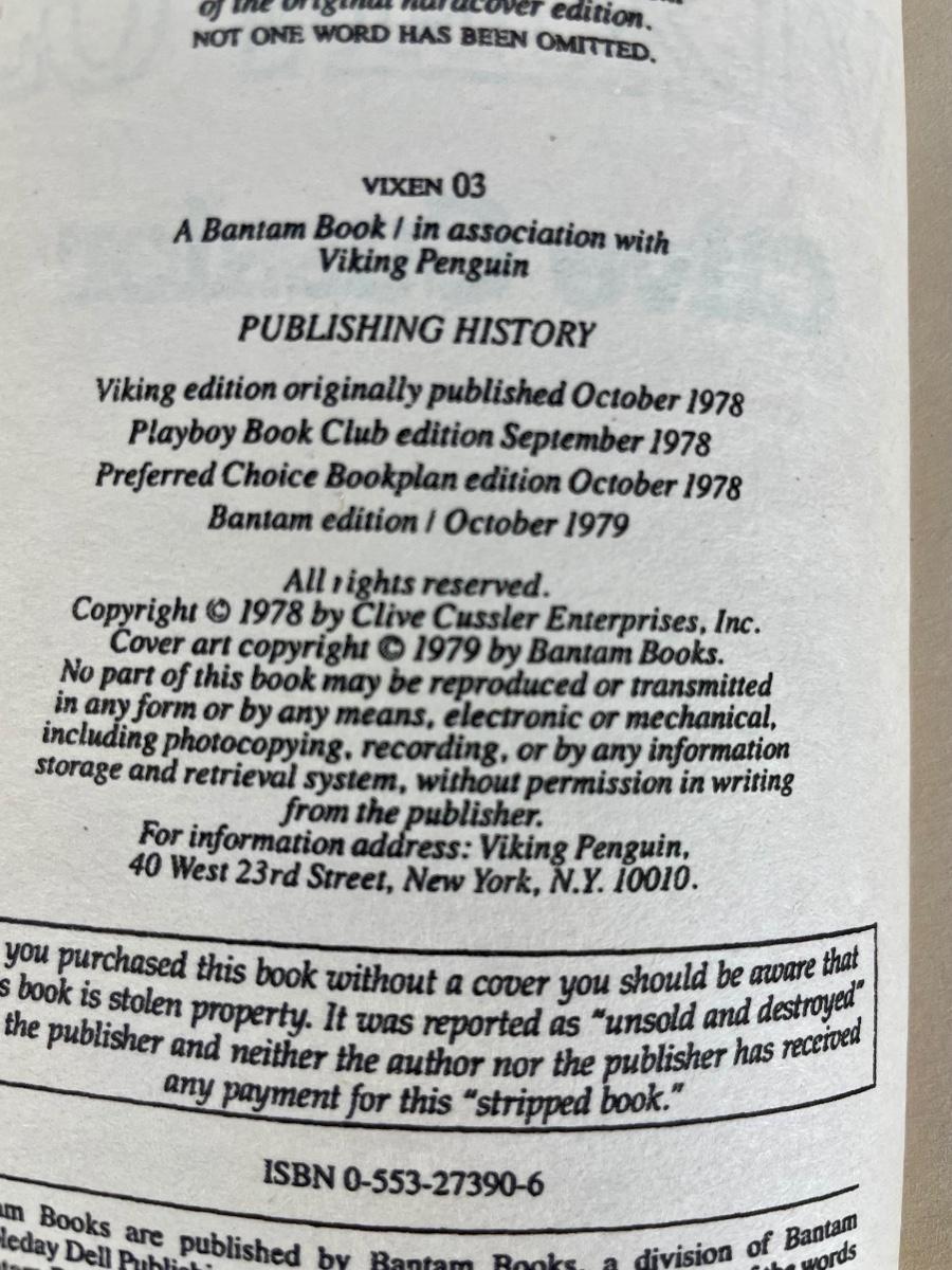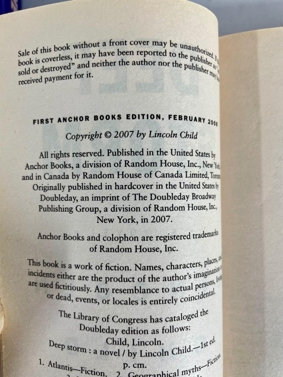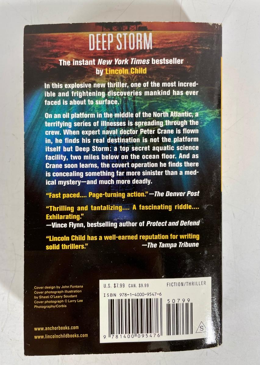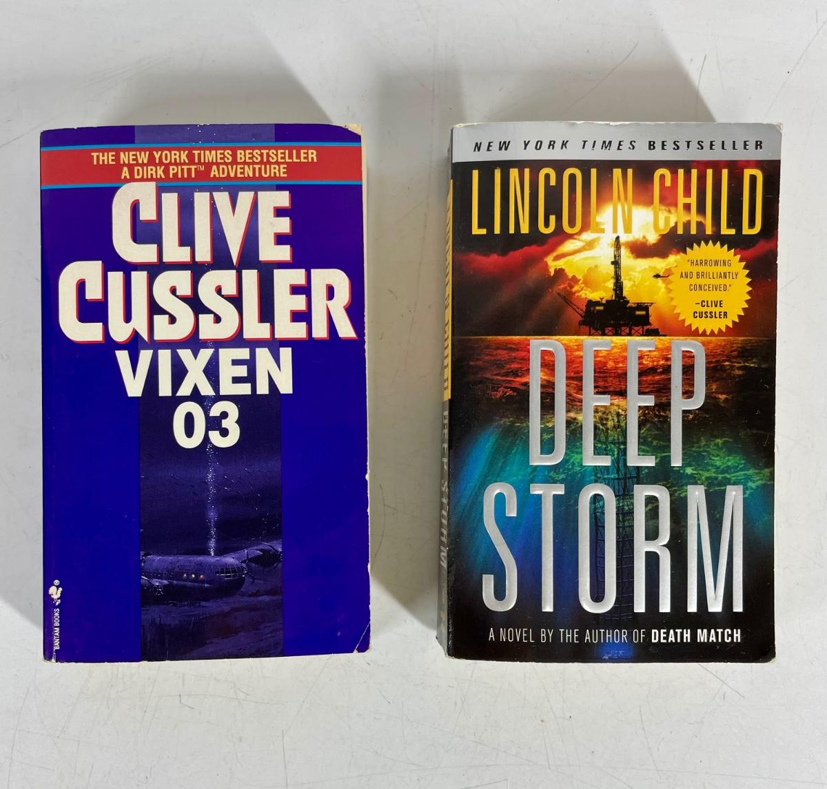 Clive Cussler “Vixen 03” and Lincoln Child “Deep Storm”. Paperbacks are in very good condition.
