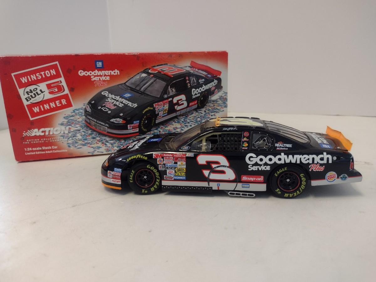 Action Racing No Bull Limited Edition Dale Earnhardt 76th Win 2000 Monte Carlo GM Goodwrench with Original Box. No Bull edition is replica condition of finish line car.