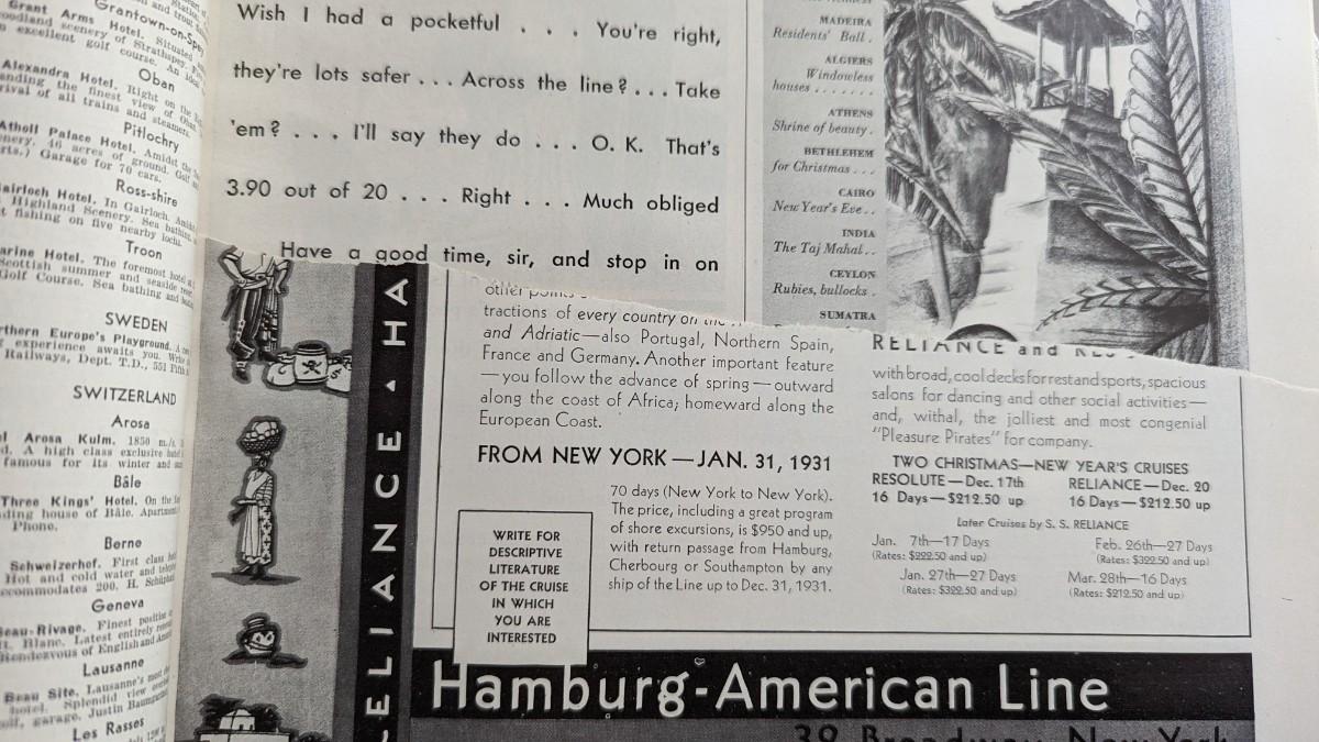 Cover is loose from spine for 4 in at top and 2 in at bottom.. No label. One page is torn in printed ads. it has been photographed for you.