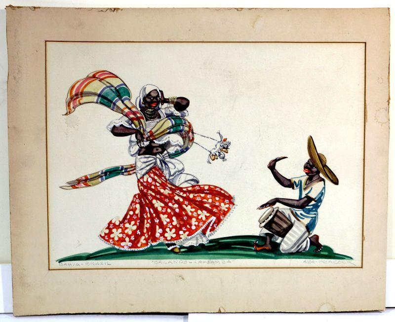 Original Watercolor painting by listed artist Ada Peacock - Bailando - La - Samba, Brazilian Scene, painting is matted but not framed, in good condition, artwork size - 16" x 12", matting size - 19" x 16", as seen on pictures.
