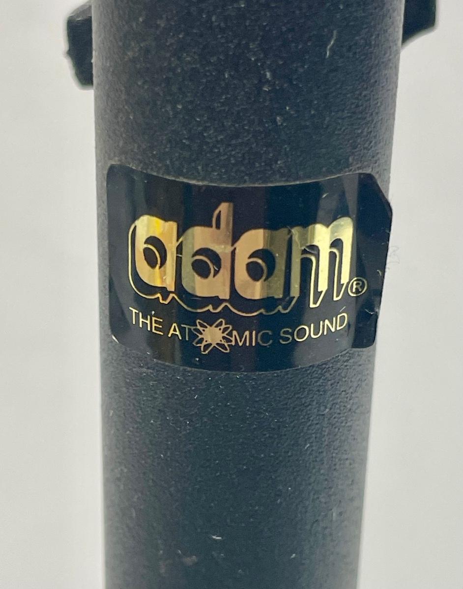 Black painted metal tube construction, neck support arm is adjustable. By ADAM themAtomic Sound.