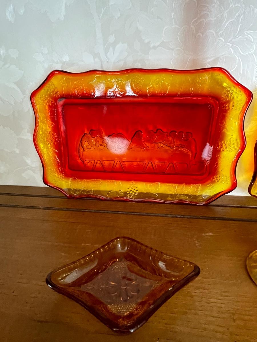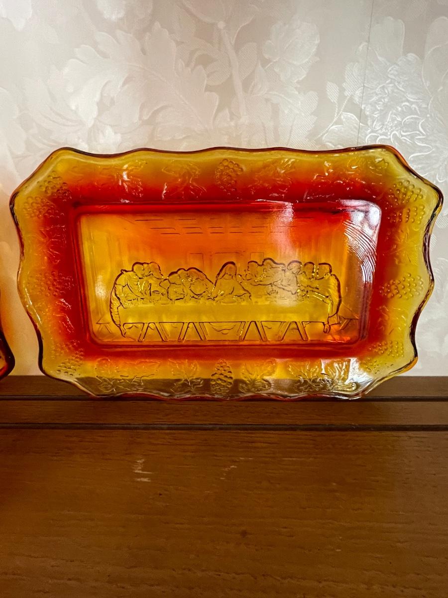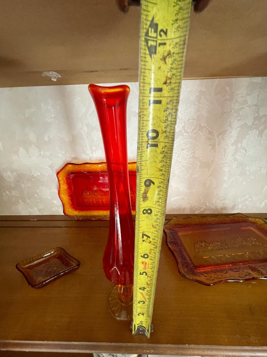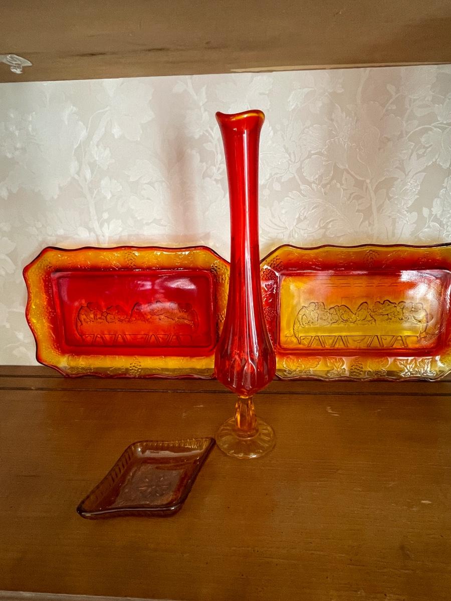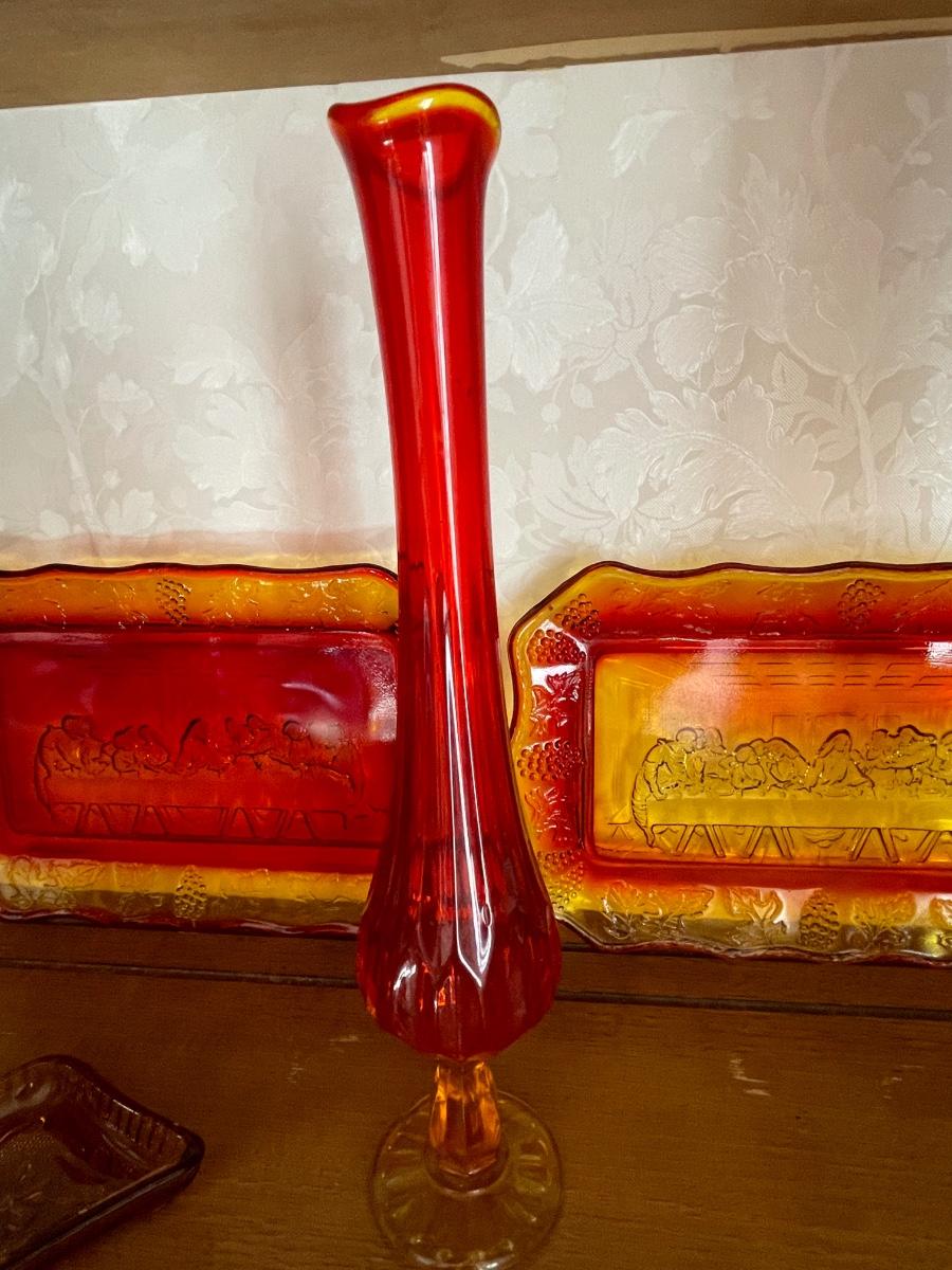 BEAUTIFUL FENTON AMBERINA 12” BUD VASE & INDIANA TIARA LAST SUPPER PLATES