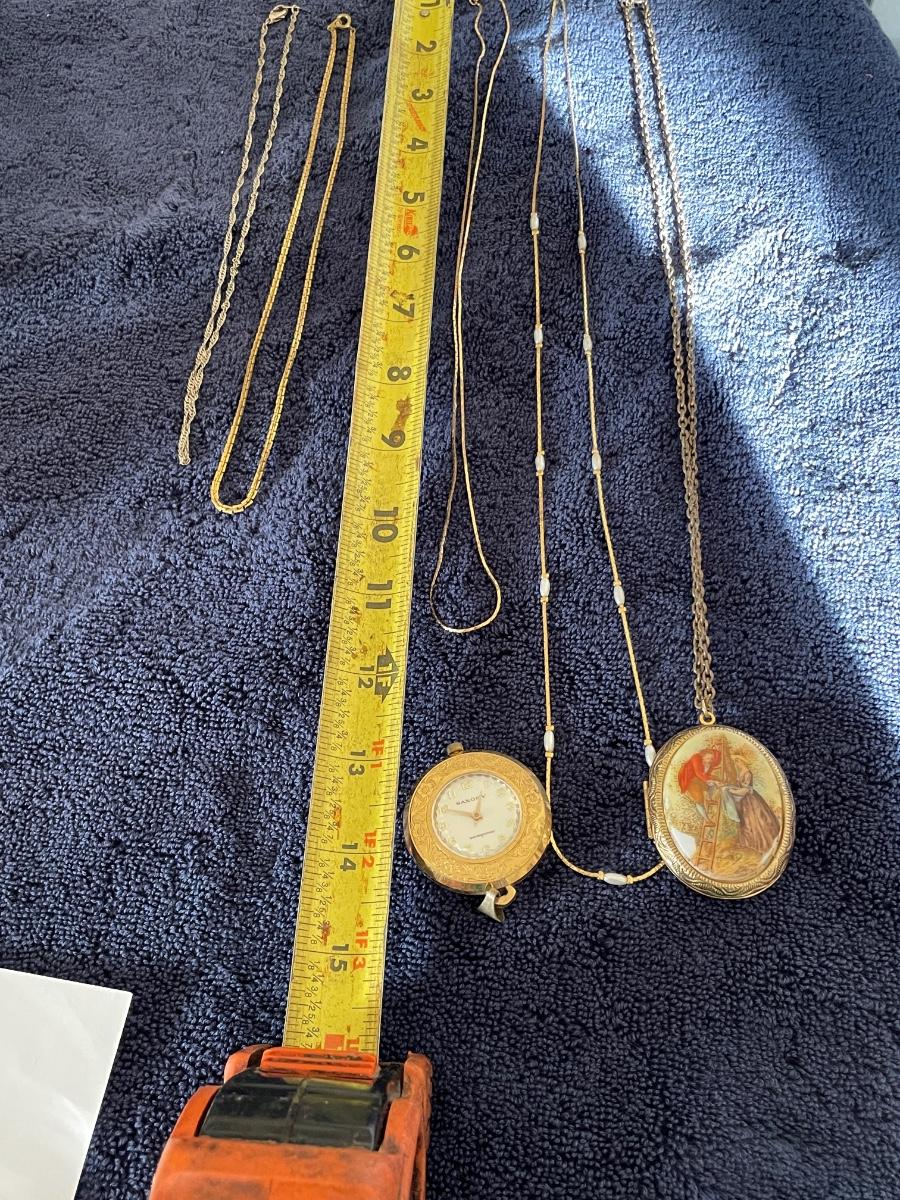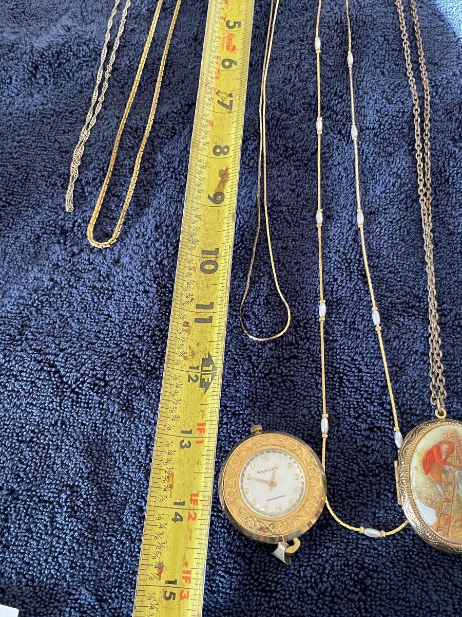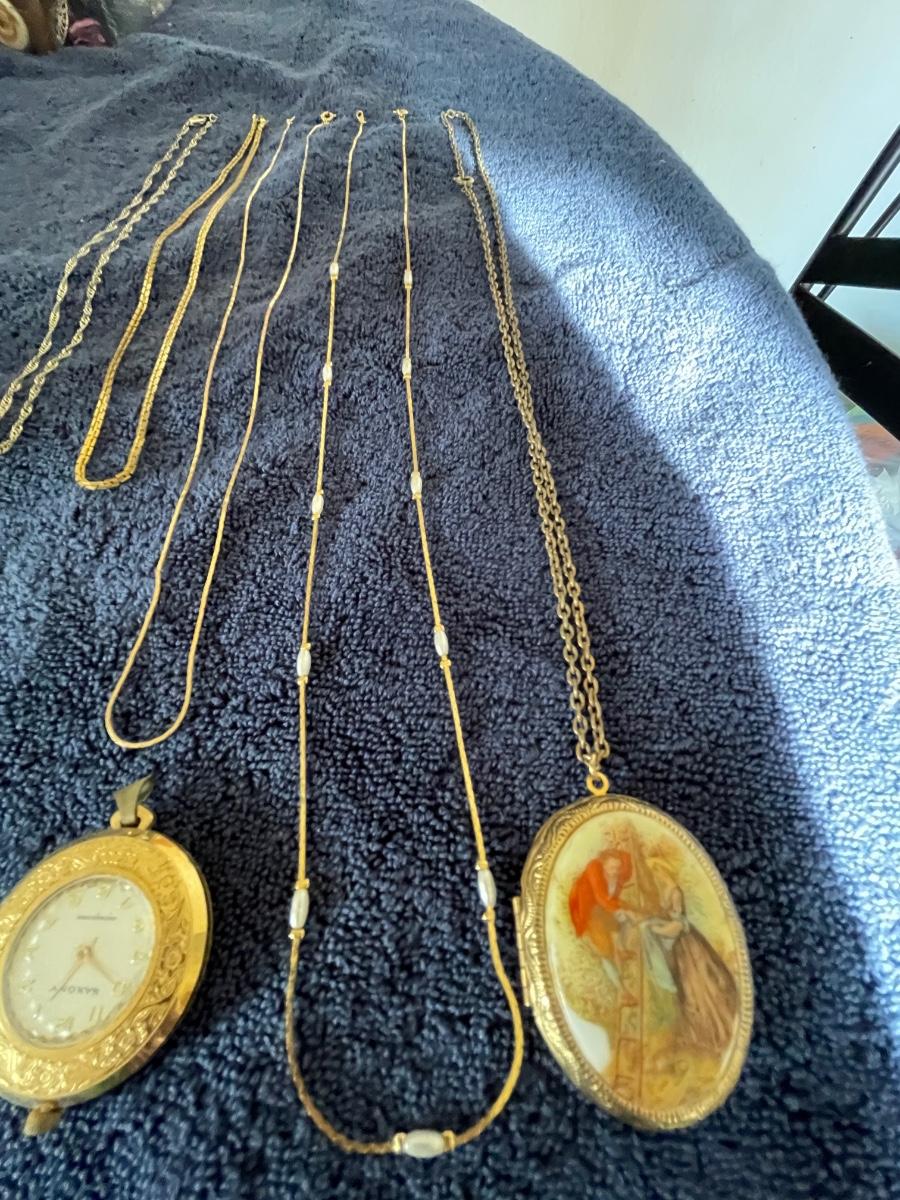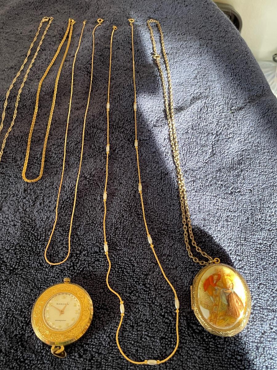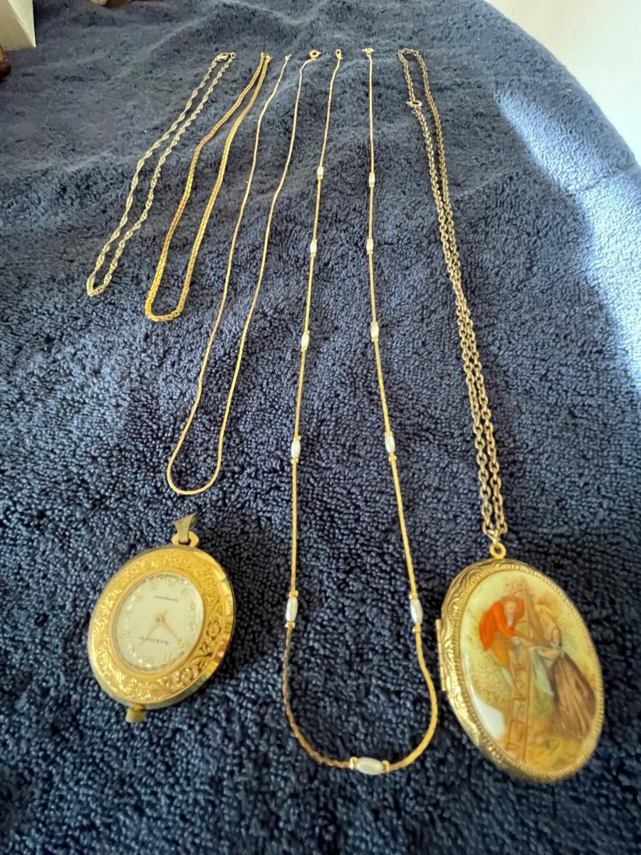 COSTUME JEWELRY CHAINS & 2 PENDANTS