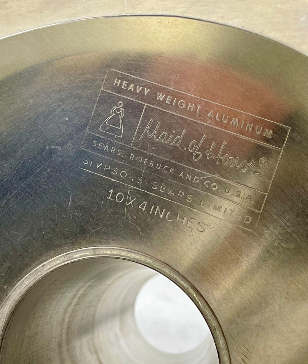 Size 10x4 inches. Made from heavy-weight aluminum for Sears. In very good condition.