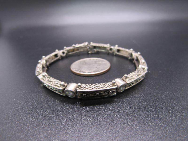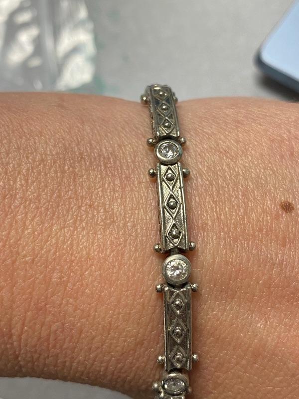 ADI sterling silver and cubic zirconia bracelet. 7.5" length. No missing stones. Marked on clasp end. #020-05117