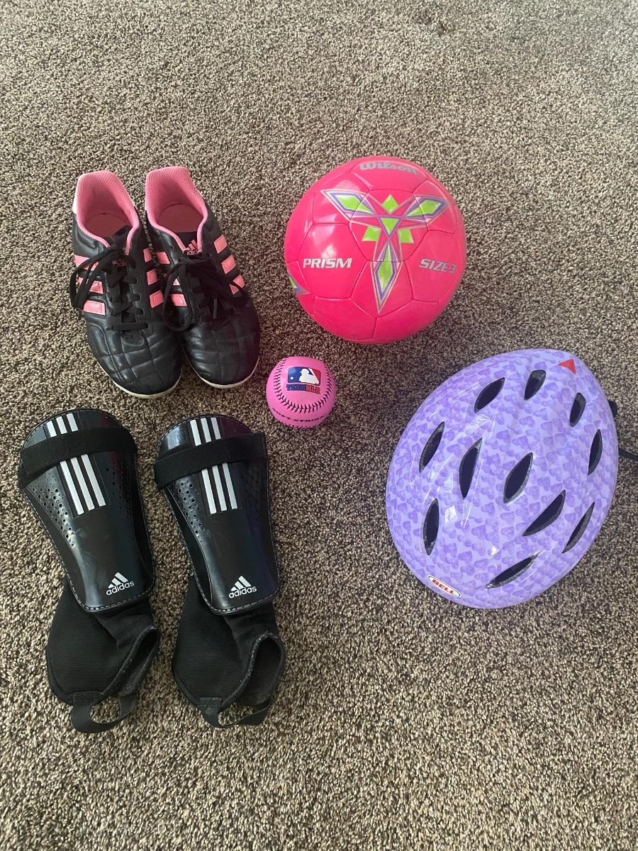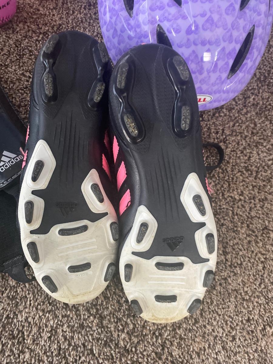 ADIDAS CLEATS & SHIN GUARDS, WILSON SIZE 3 SOCCER BALL AND MORE!