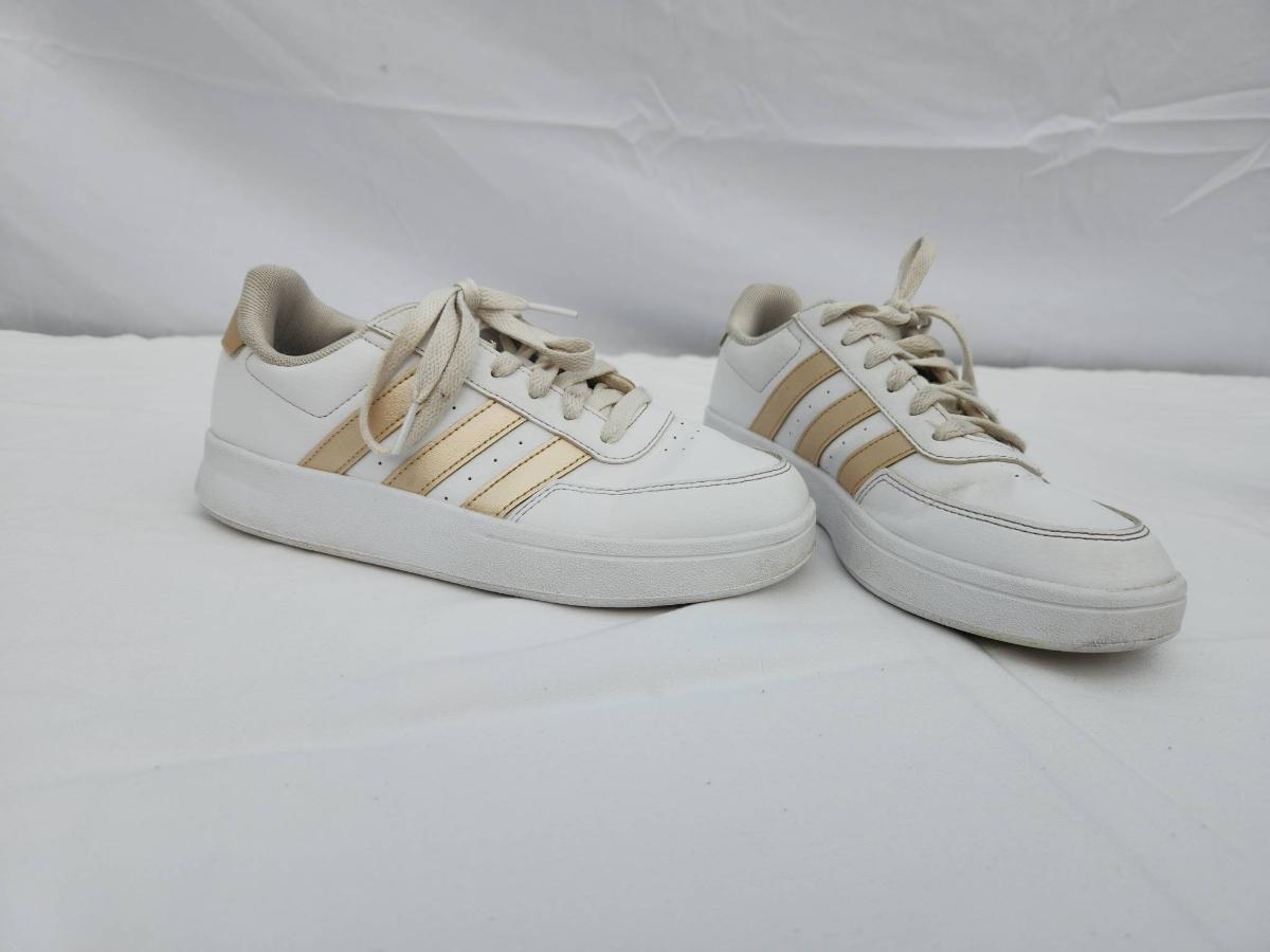 Adidas Women’s White and Gold Athletic Sneakers, Size 5.5