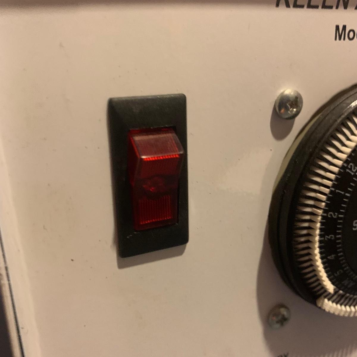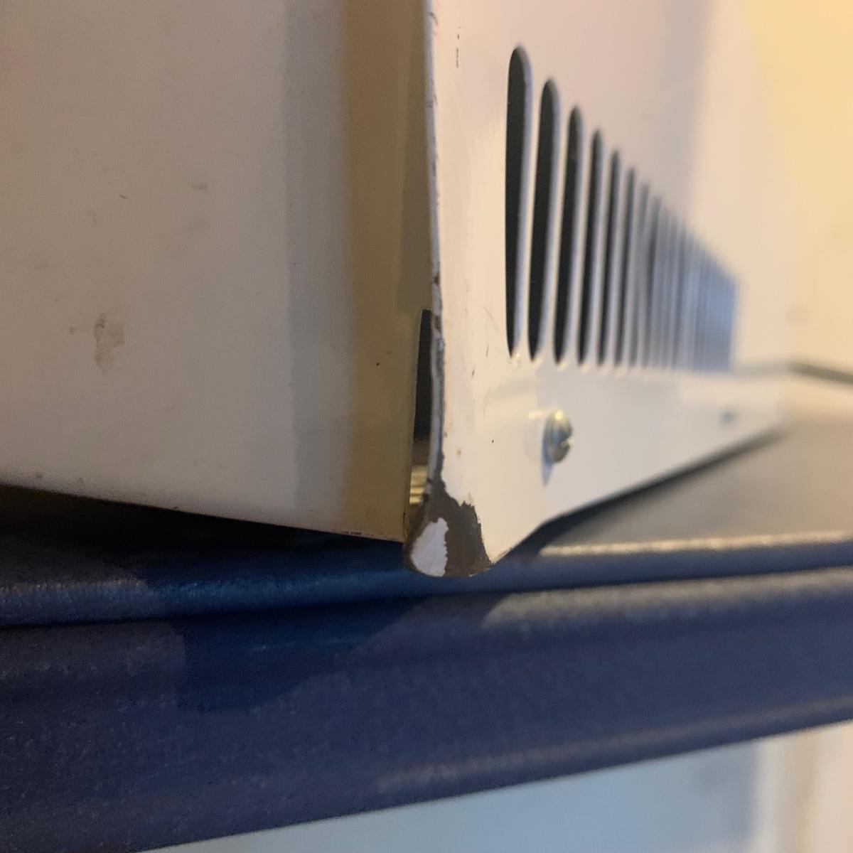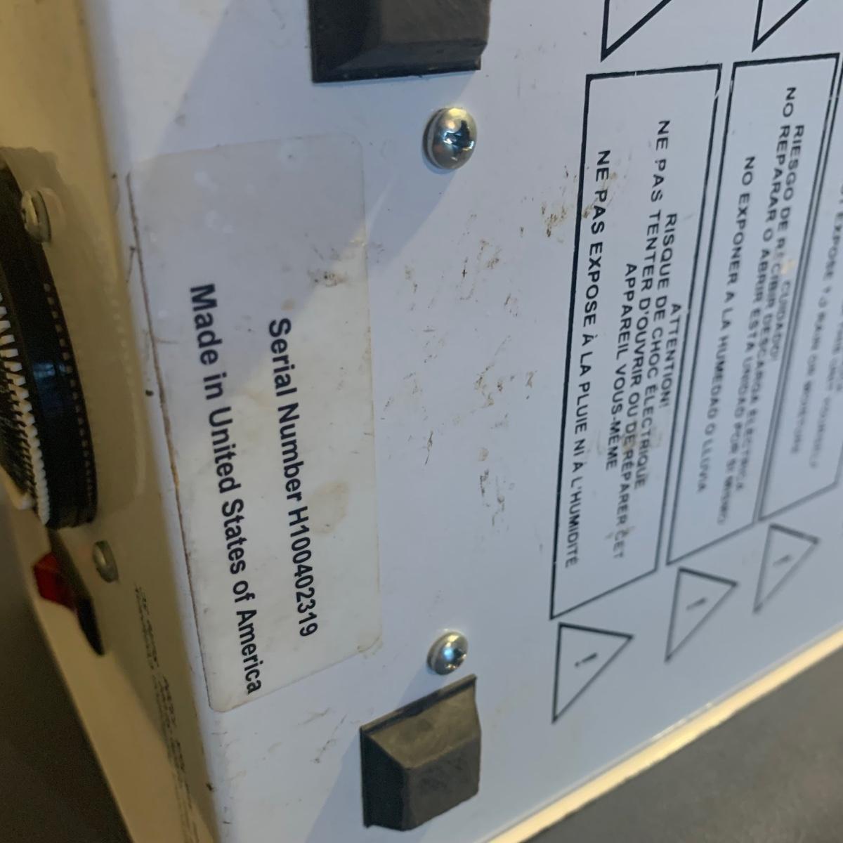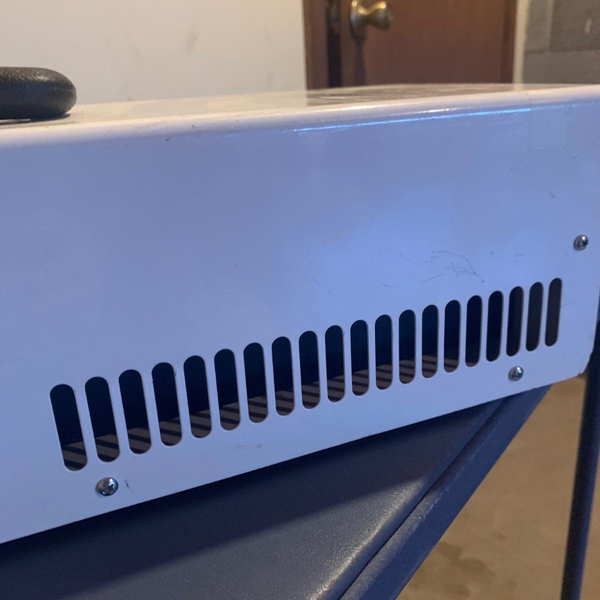 Kleen Air King II, Model 1004 by Adirondack Purification Company. Air purifier and ozone generator. Item shell is made of metal. It has slight bends in the metal on the front corners and some surface scratches. Item measures approximately 7” x 21” x 5”H. It powered on when plugged in.