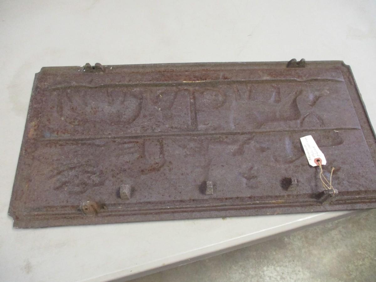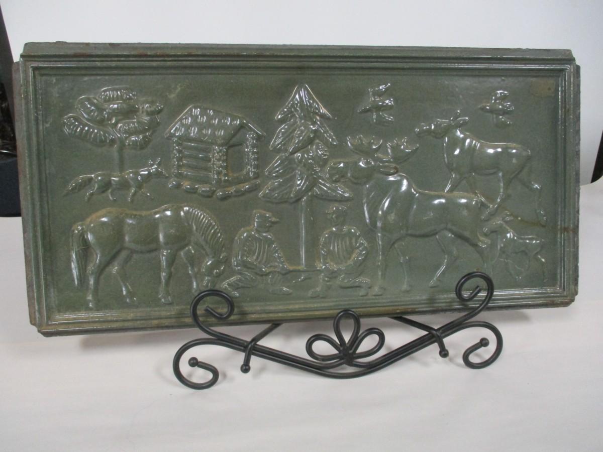 Adirondack Style Cast Iron Fire-back c. 1900 plate holder not included