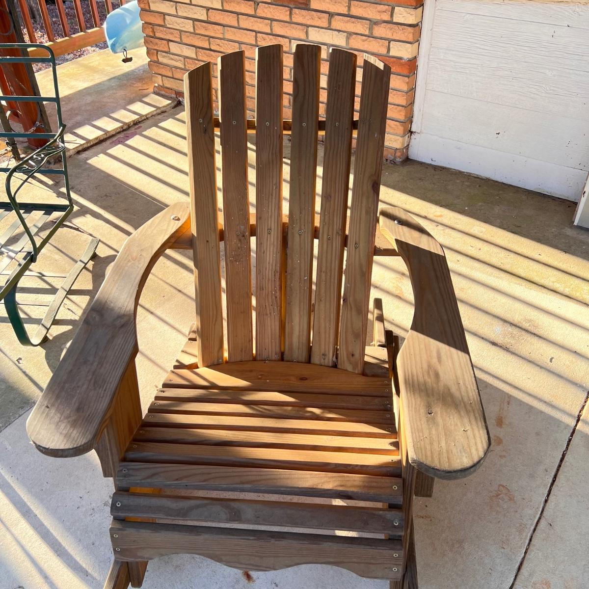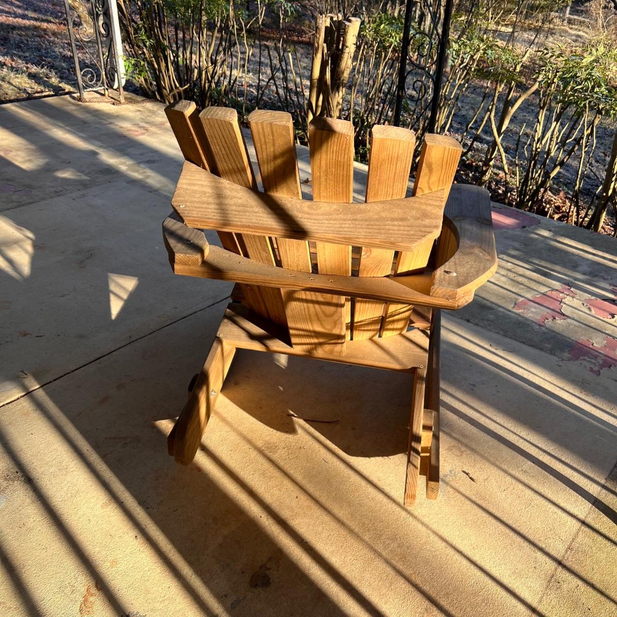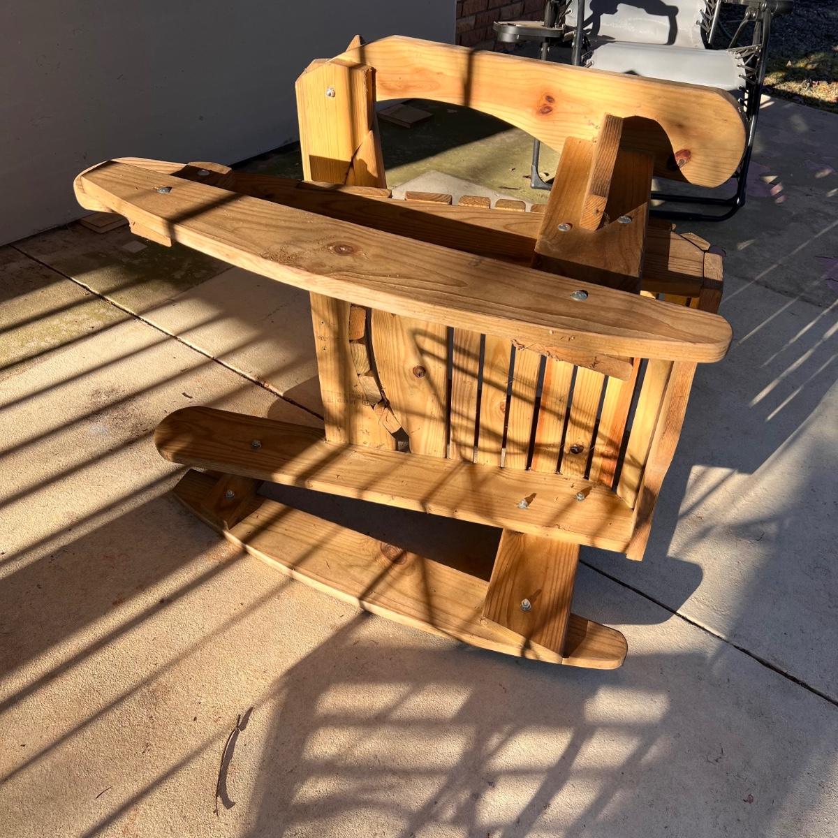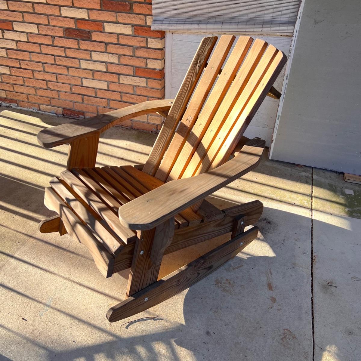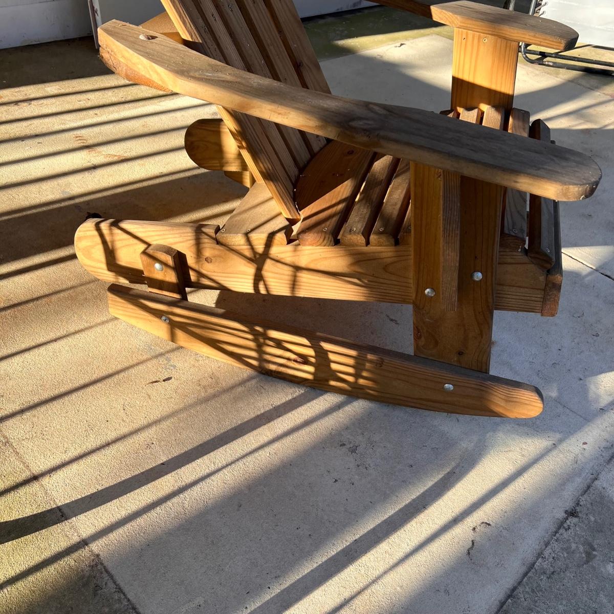 This very sturdy, well built Adirondack chair is a rocker. It’s in great shape. Some shadows in photos from the sun.