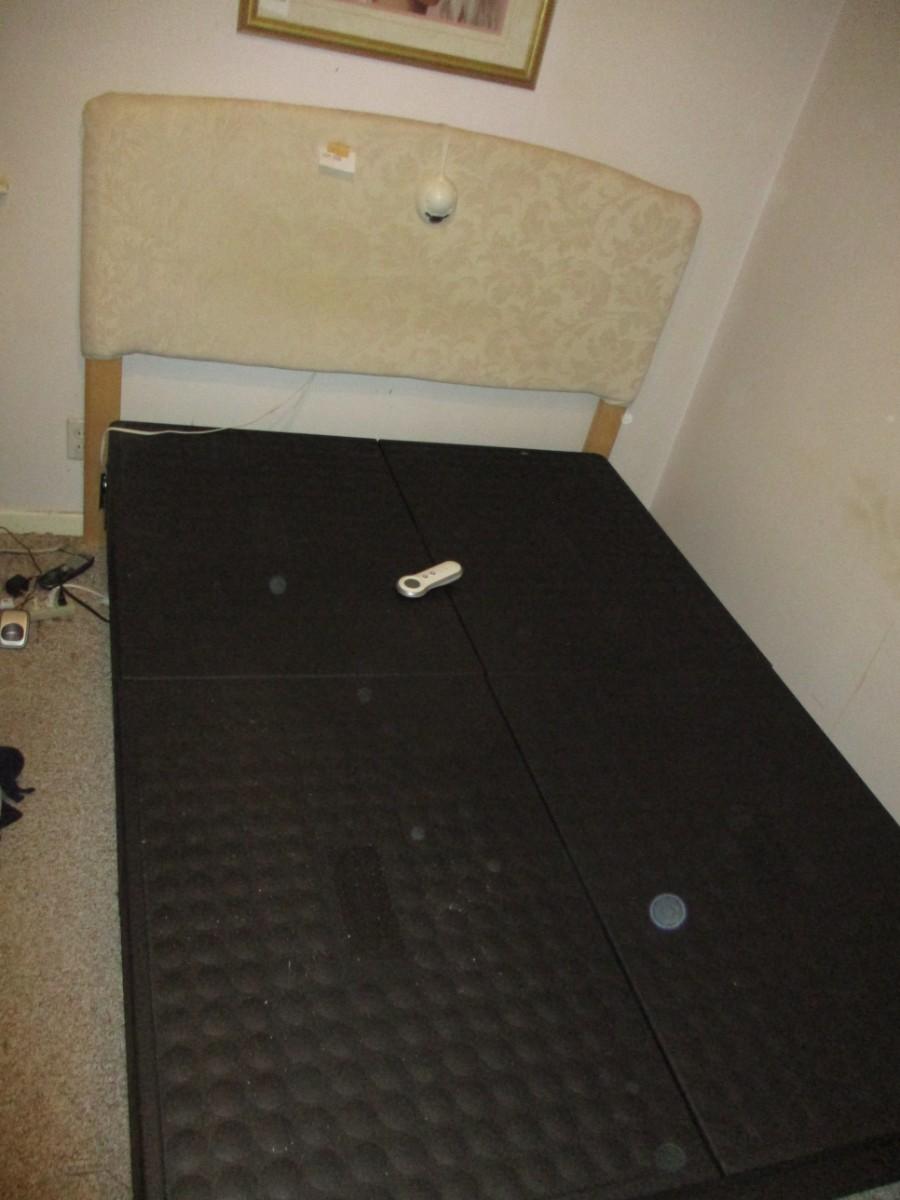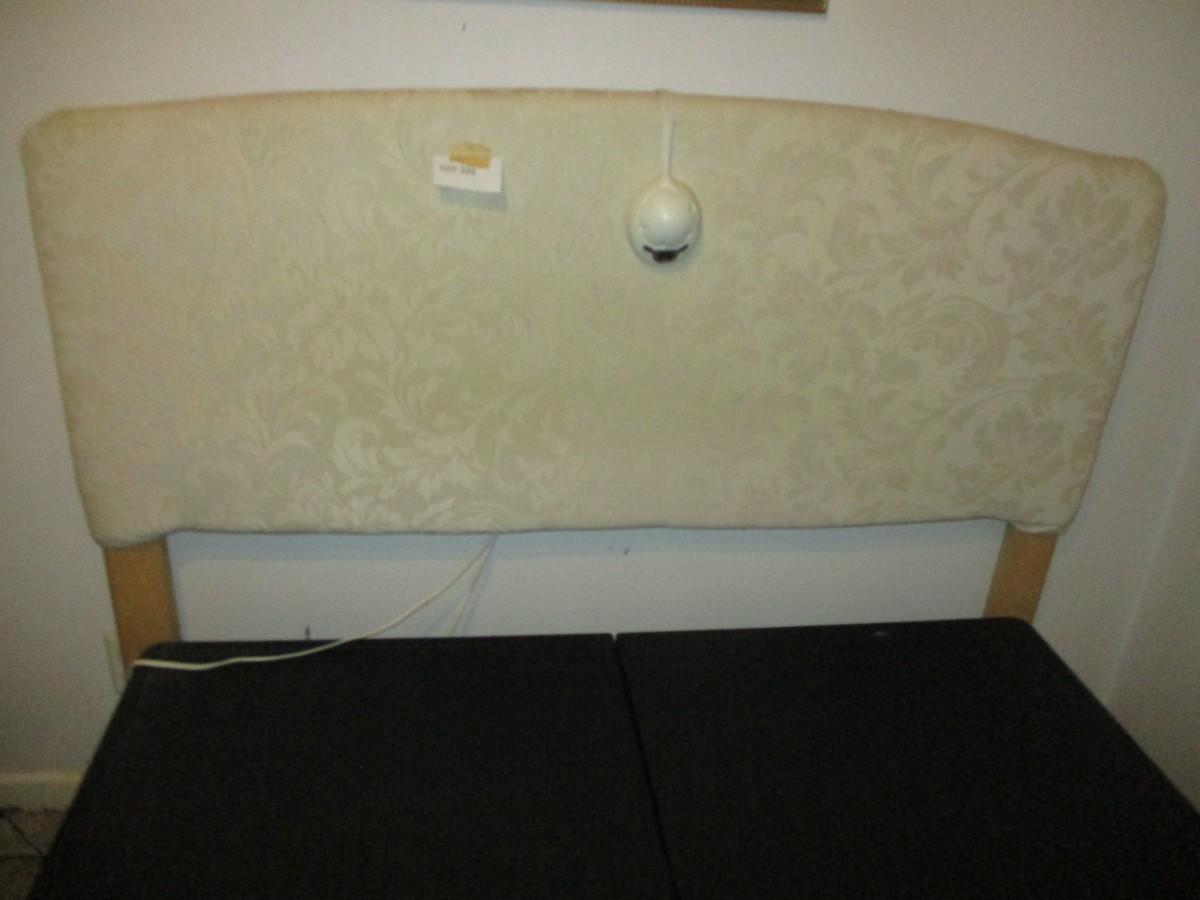 Double Twin w/remote. Not a mattress. Remote comes on but shows Error. Upholstered cream fabric headboard