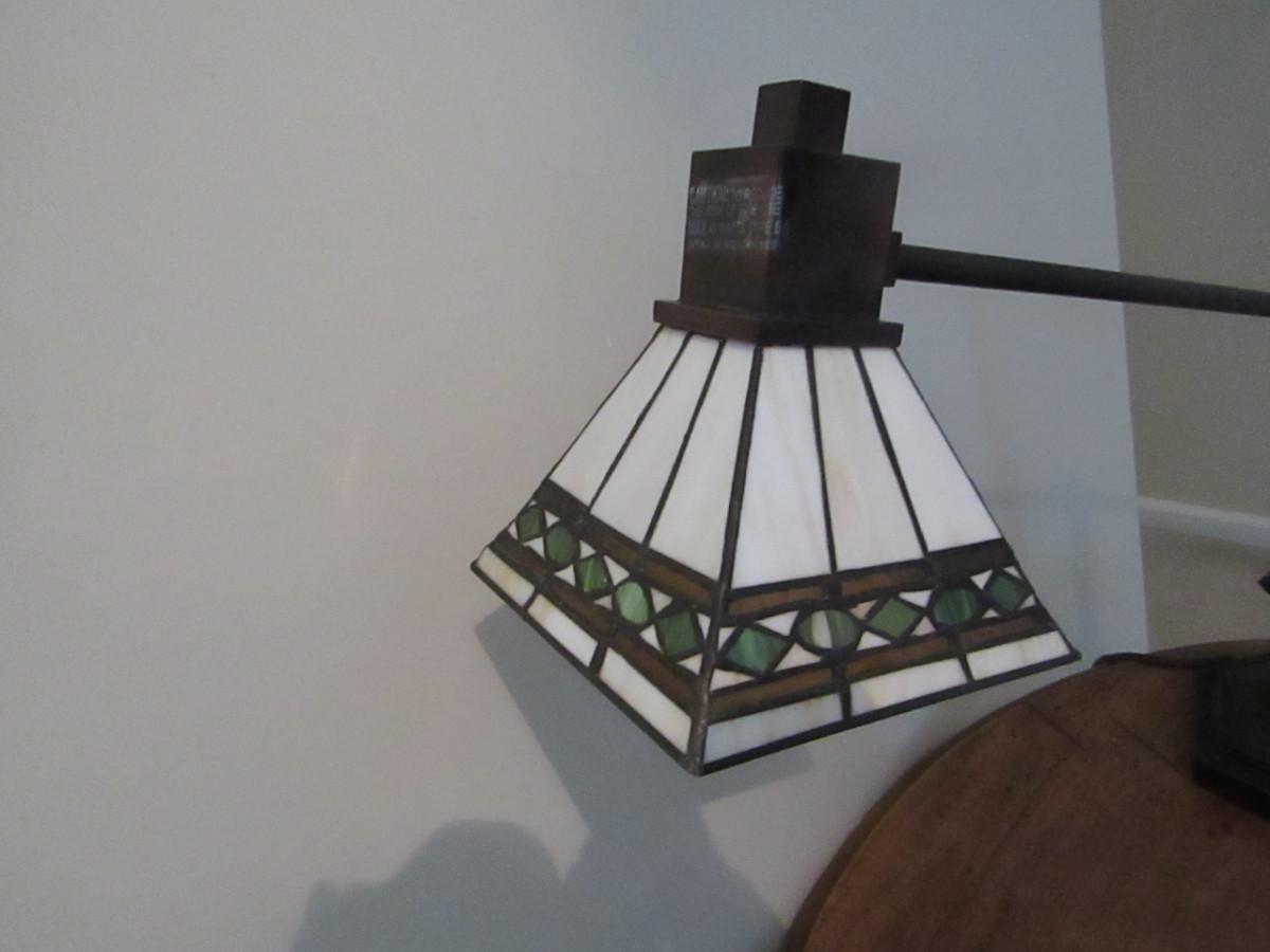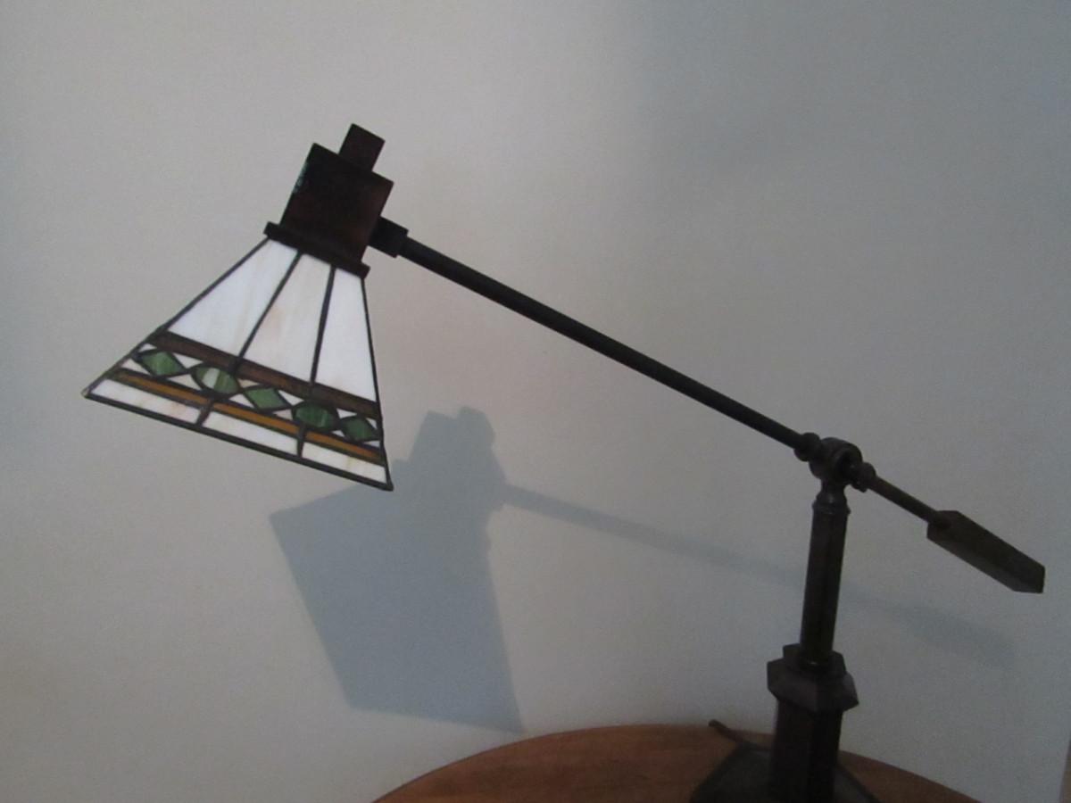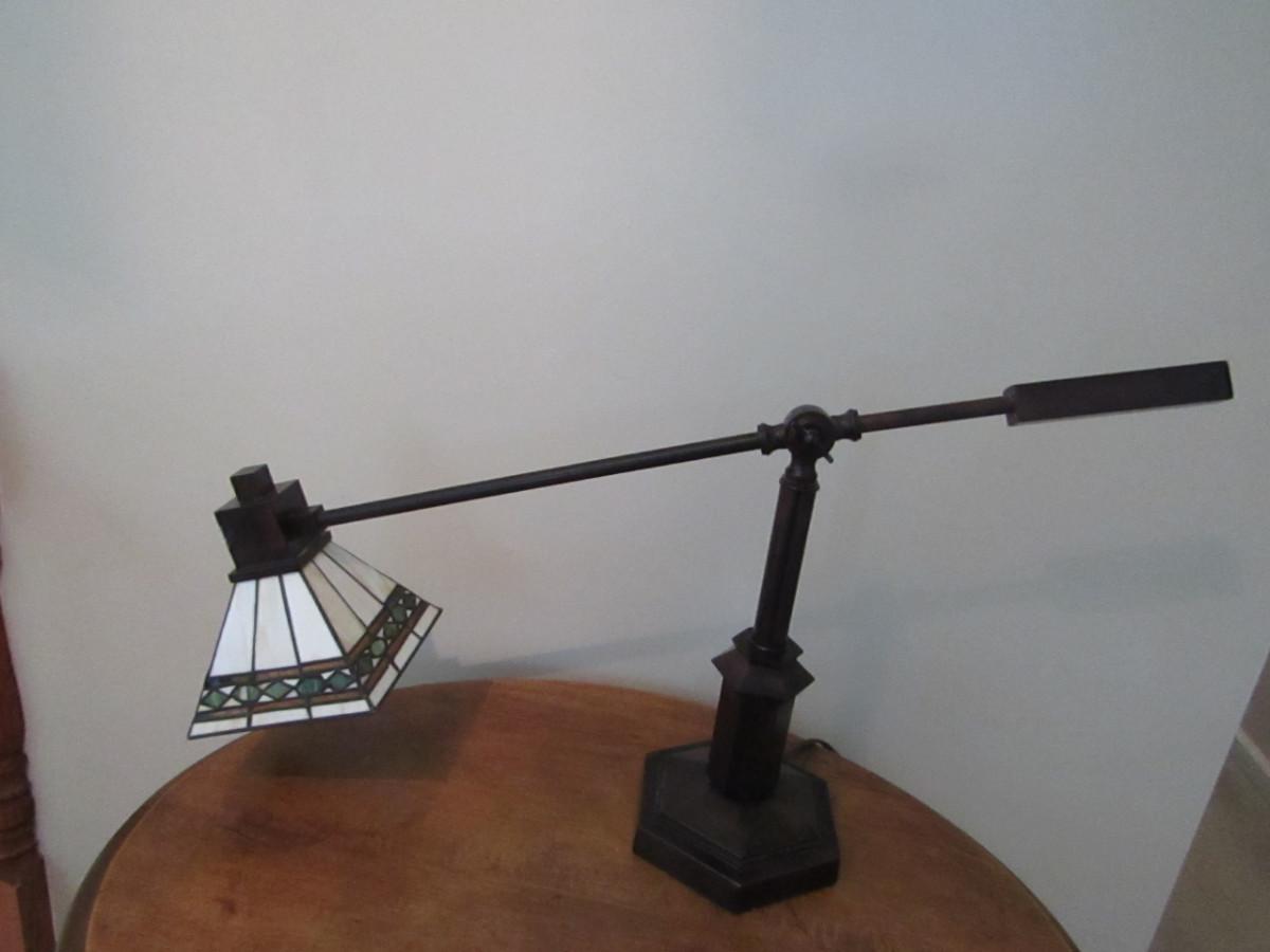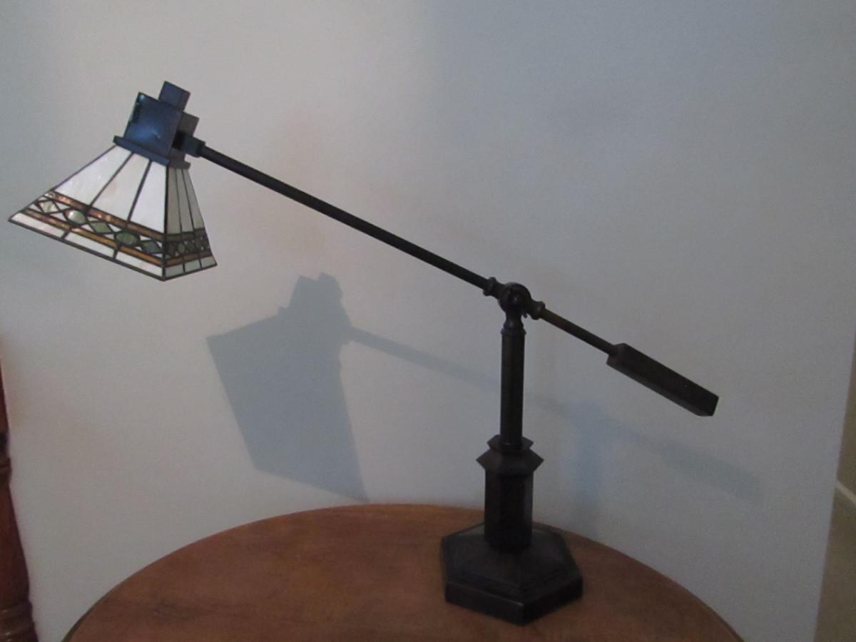 Adjustable Boom Arm Table Lamp with Stained Glass Shade