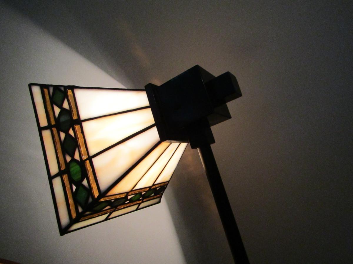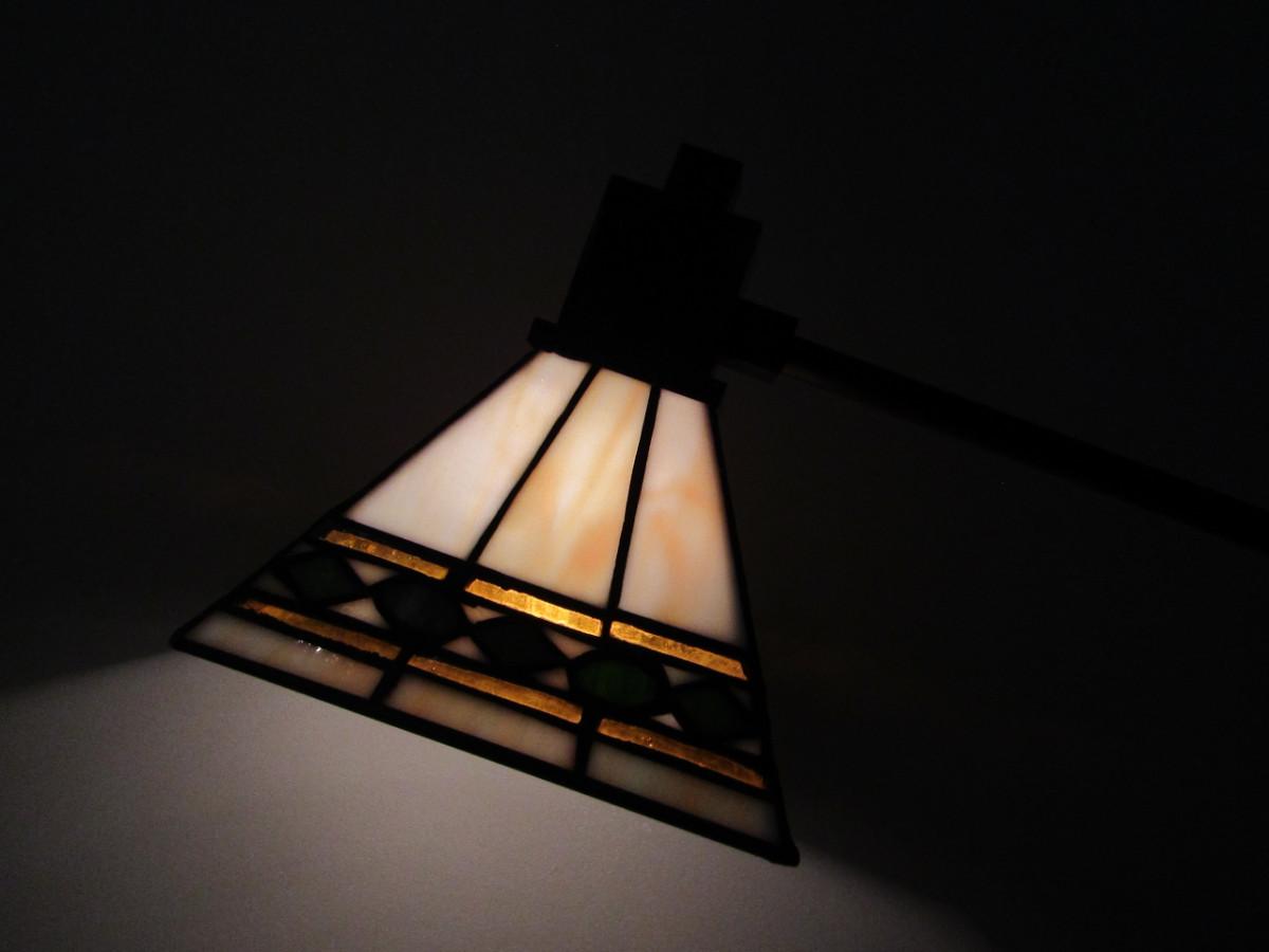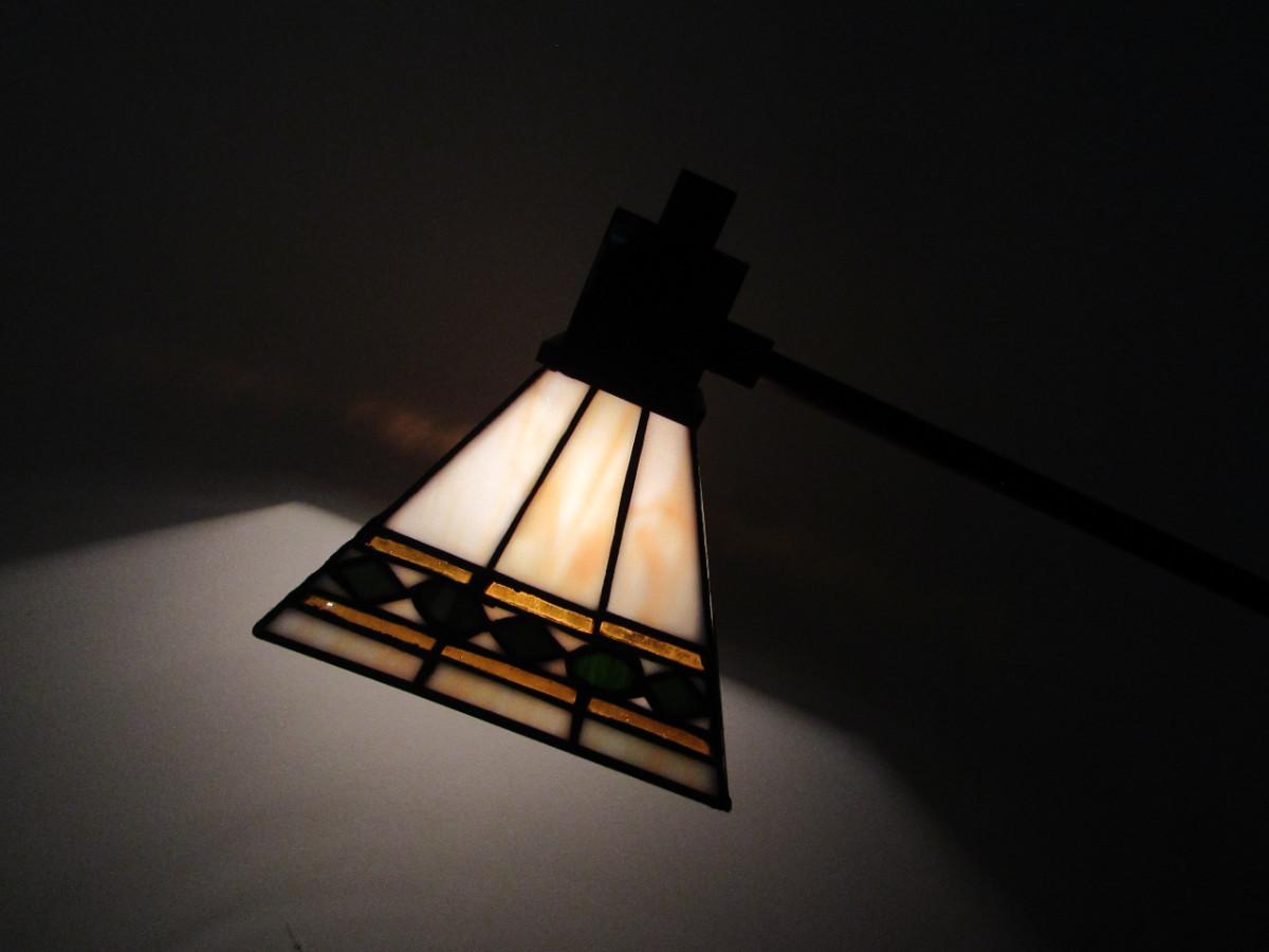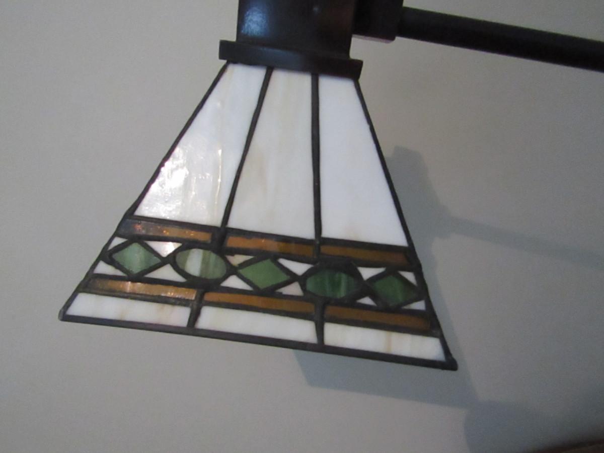 Adjustable Boom Arm Table Lamp with Stained Glass Shade