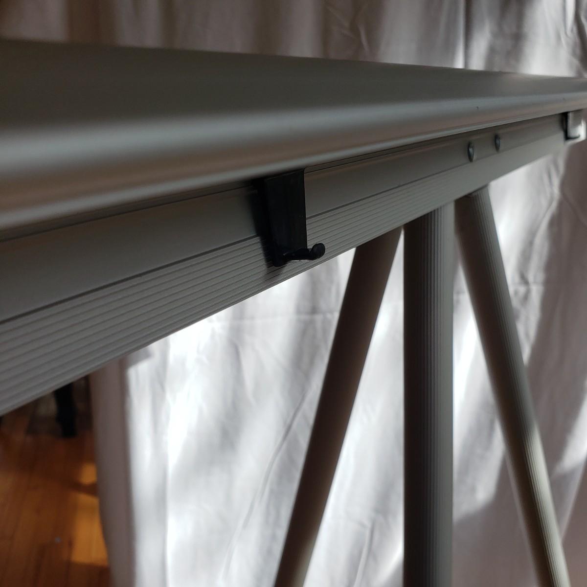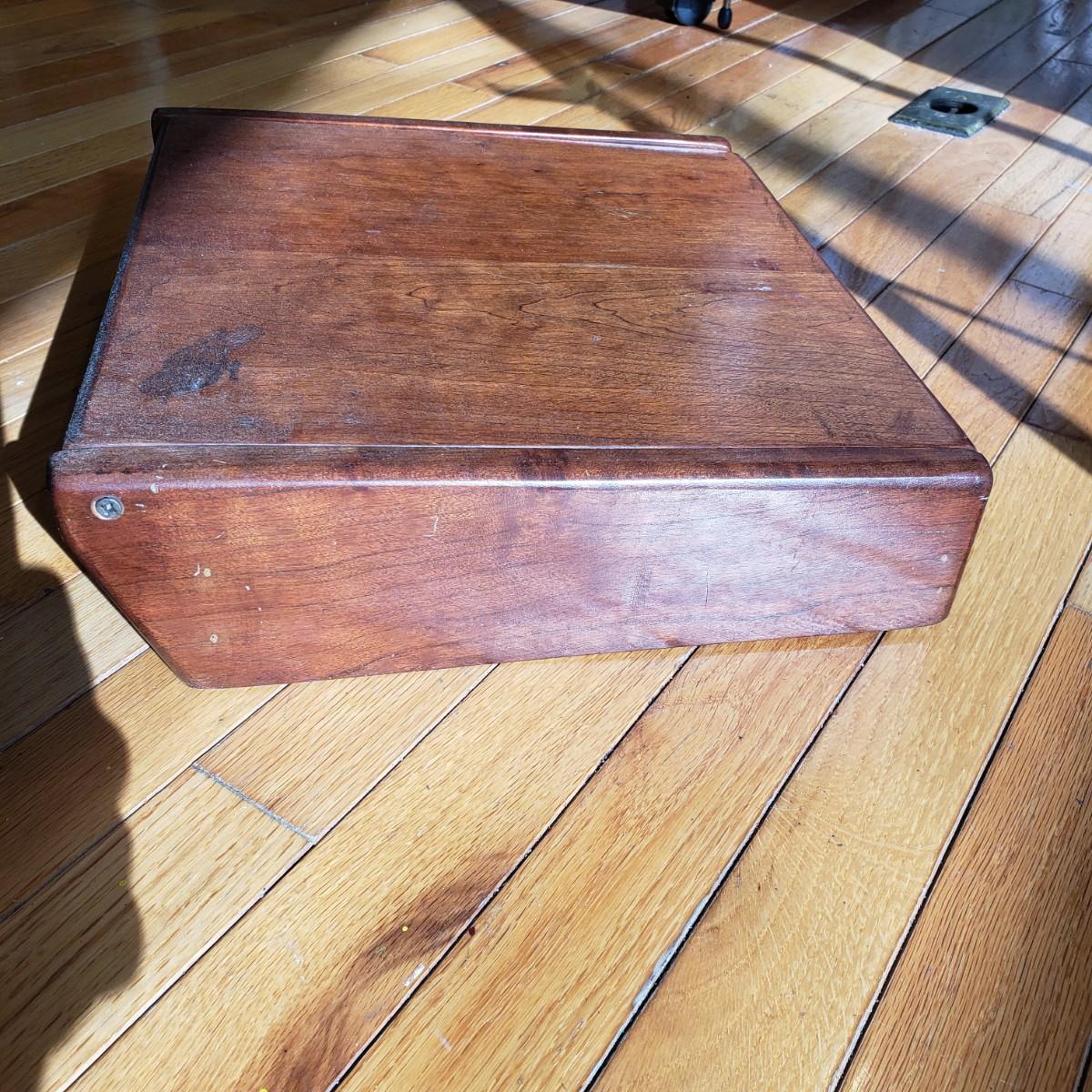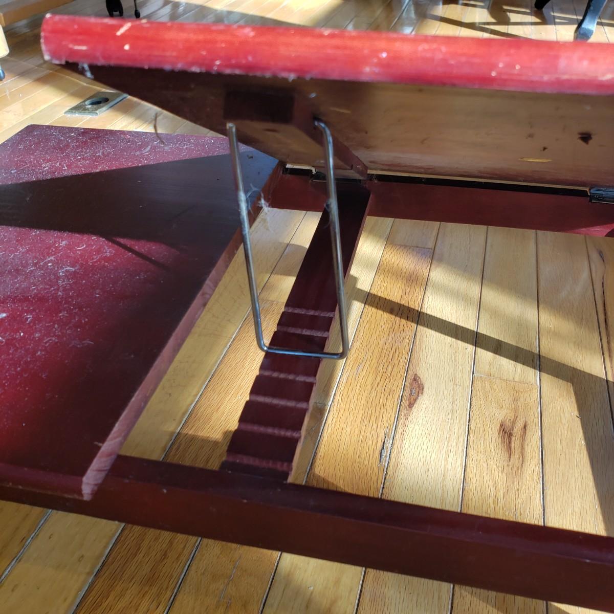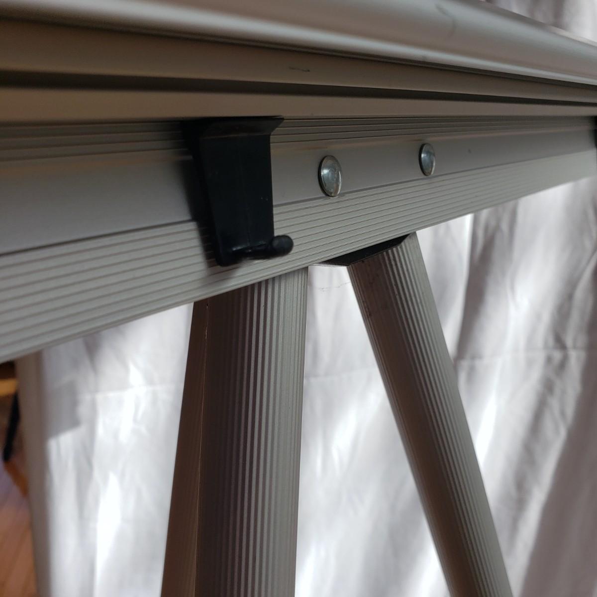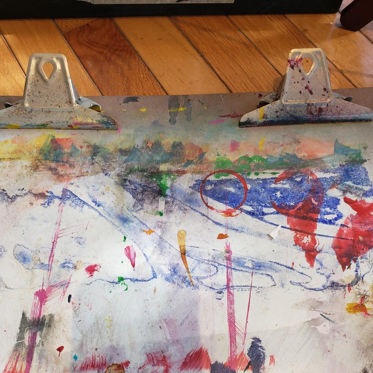 This lot features an adjustable easel, two angled flip top writing/drawing desks, an adjustable TV tray ,and a two-clip tote board. The easel has adjustable legs, two clips that fold down to hold the bottom of a canvas/paper, and two adjustable clips at the top. The two flip top desks each measure approximately 14" x 13" x 4"H. The TV tray has a lip on the bottom of one section and has adjustable height tray. All of it folds down for easy storage. The two clip tote board measures 23" x 26". The board already has inspirational paint on it!
