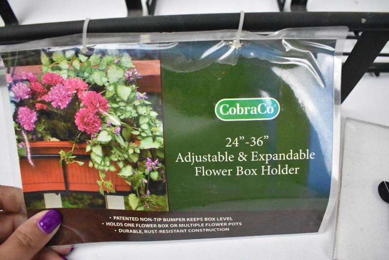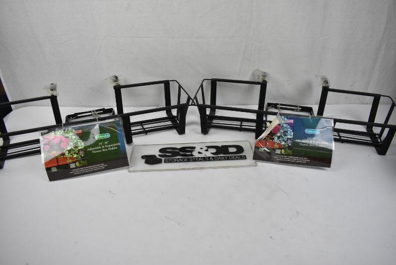 Adjustable & Expandable Flower Box Holders. Black Metal, Qty 2