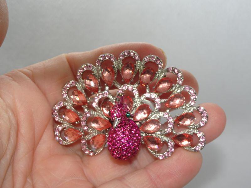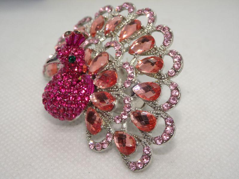 Adjustable Grand Pink Peacock Rhinestone Ring