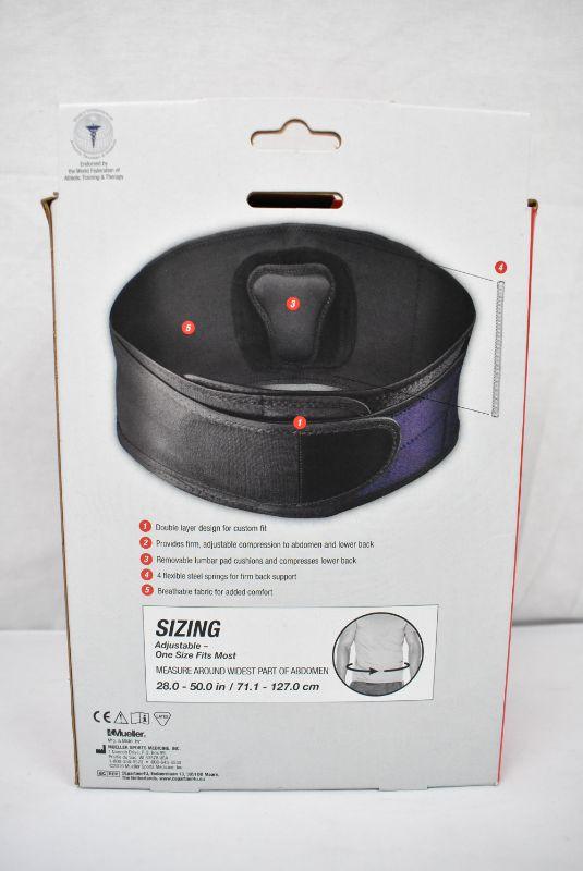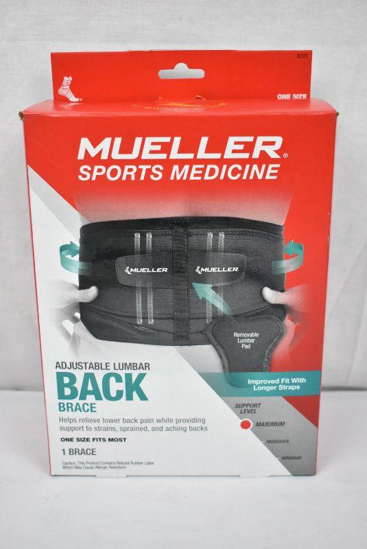 Mueller Adjustable Lumbar Back Brace with Removable Pad, Regular, Fits Waist Sizes 28" - 50", $19 Retail - New