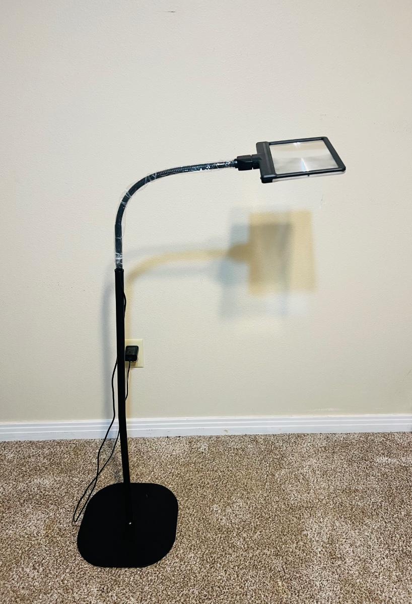 New! Adjustable Magnifying Arc Floor Lamp with Dimmable LED Light. As pictured measures 43 inches tall.