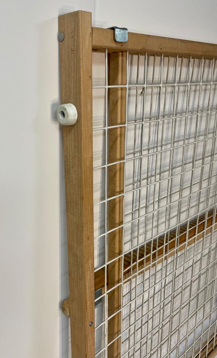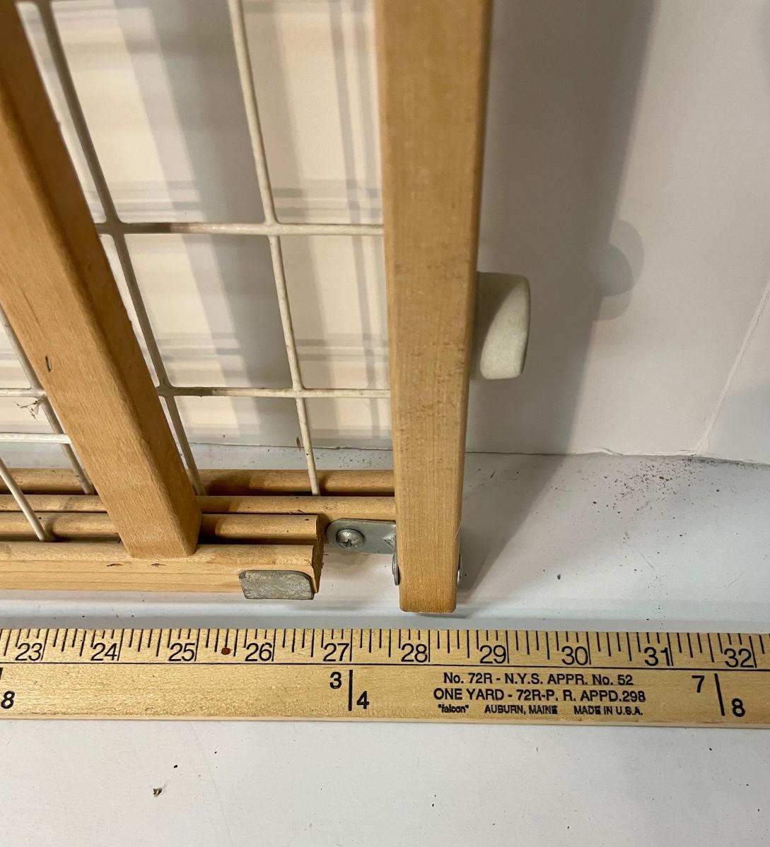 Adjustable Pet Doorway Gate. Made from wood, is easily adjustable in 1/2” increments. Can be quickly removed when doorway access is needed.