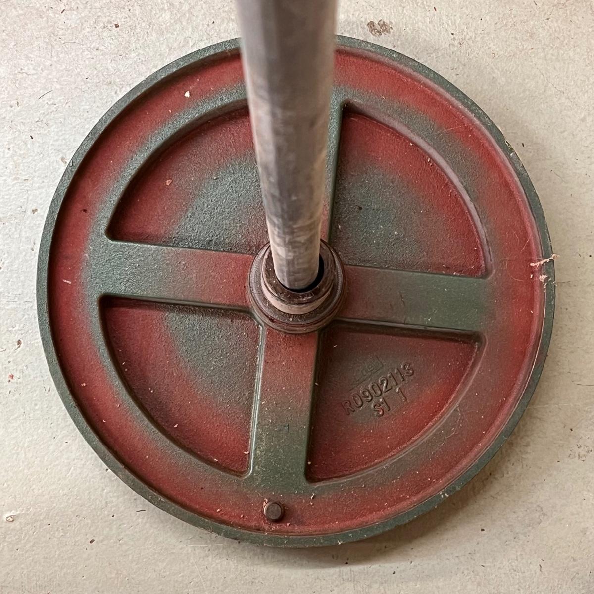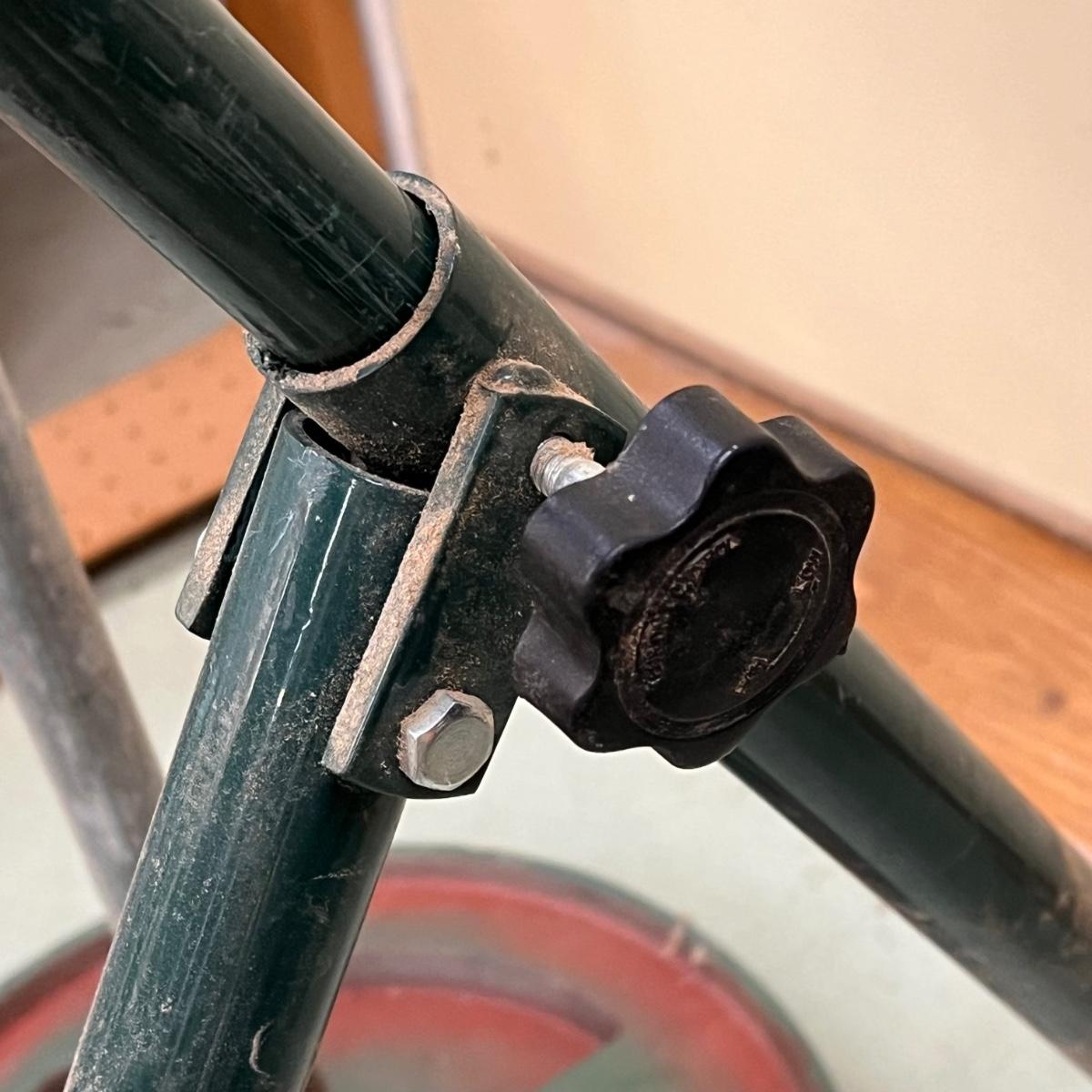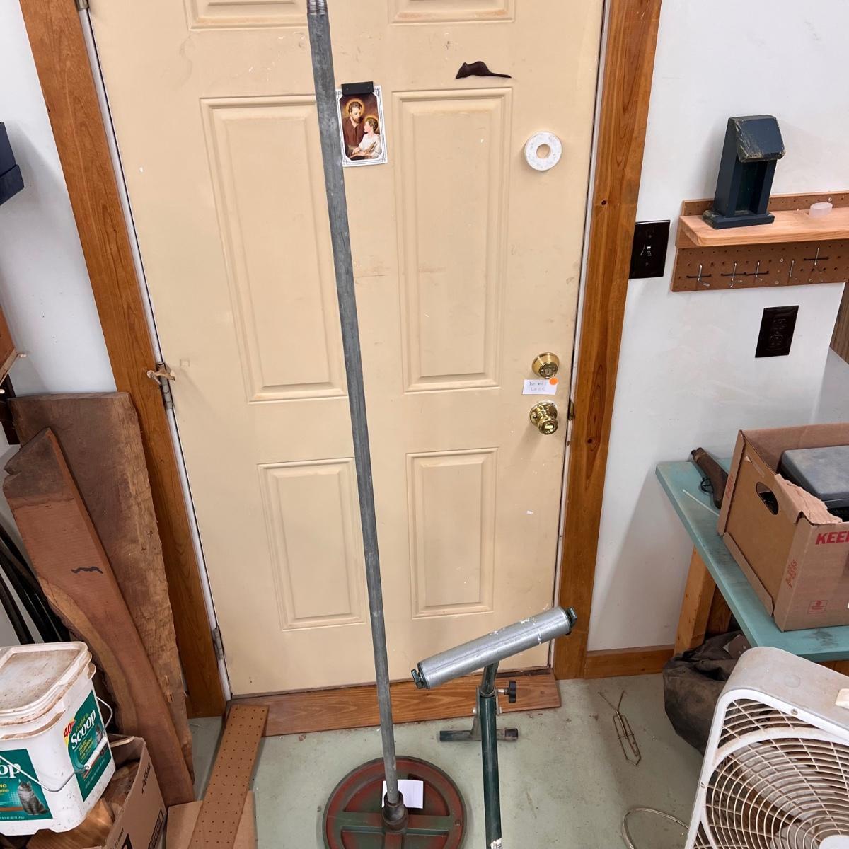 This lot includes one adjustable roller stand and one base of a roller stand. The tallest item measures 14”D x 73”H.