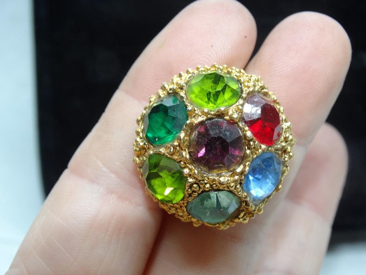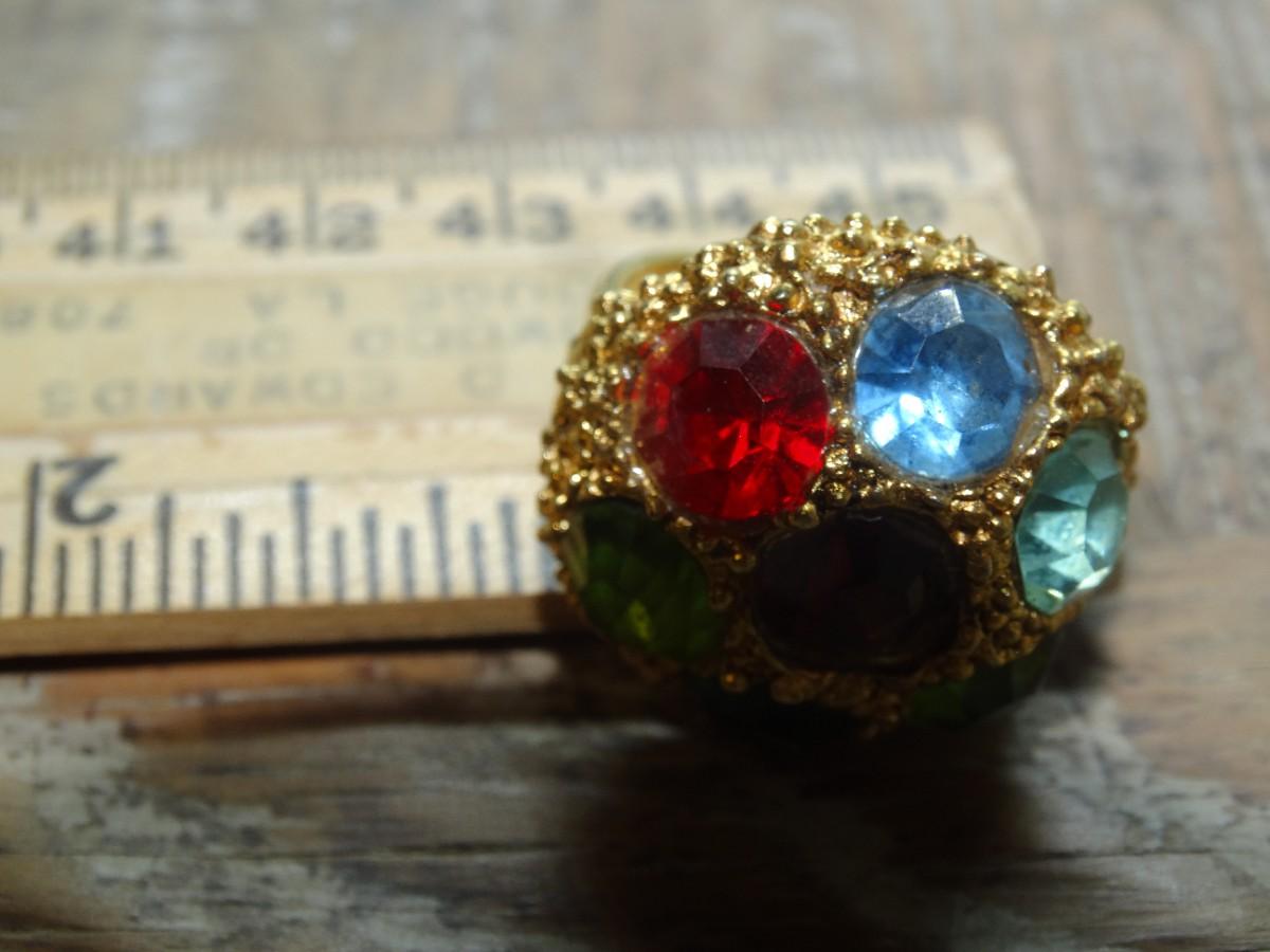 Adjustable Vintage Bling Ring, Colorful Rhinestones, Colors of the Rainbow!
