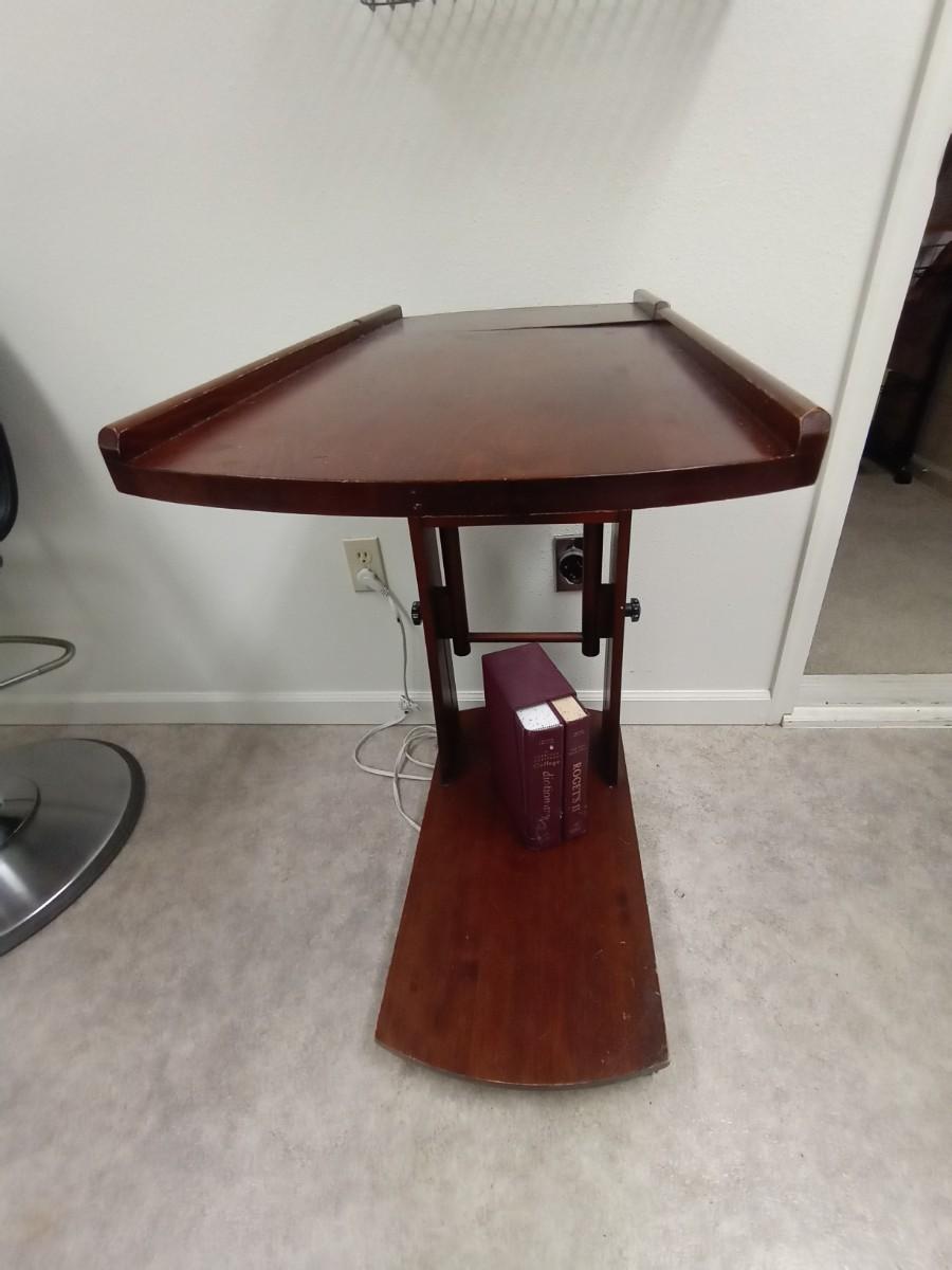 ADJUSTABLE WOODEN WRITING OR BED TABLE AND COLLEGE DICTIONARY SET