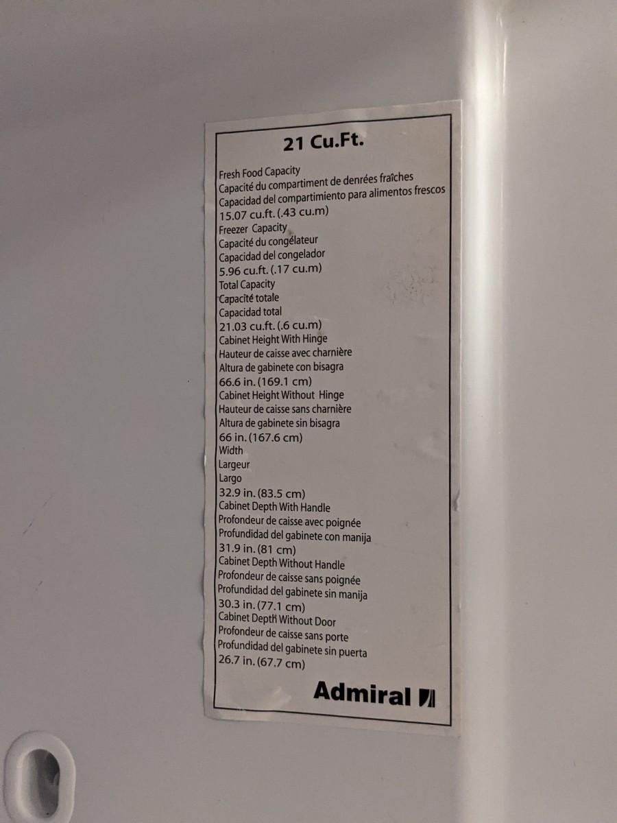 Admiral 21 Cu Ft Refrigerator-Solid, clean, works great