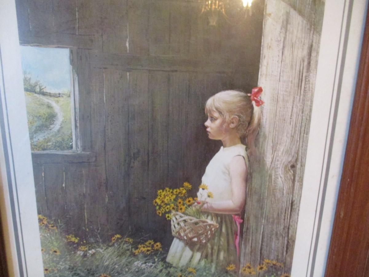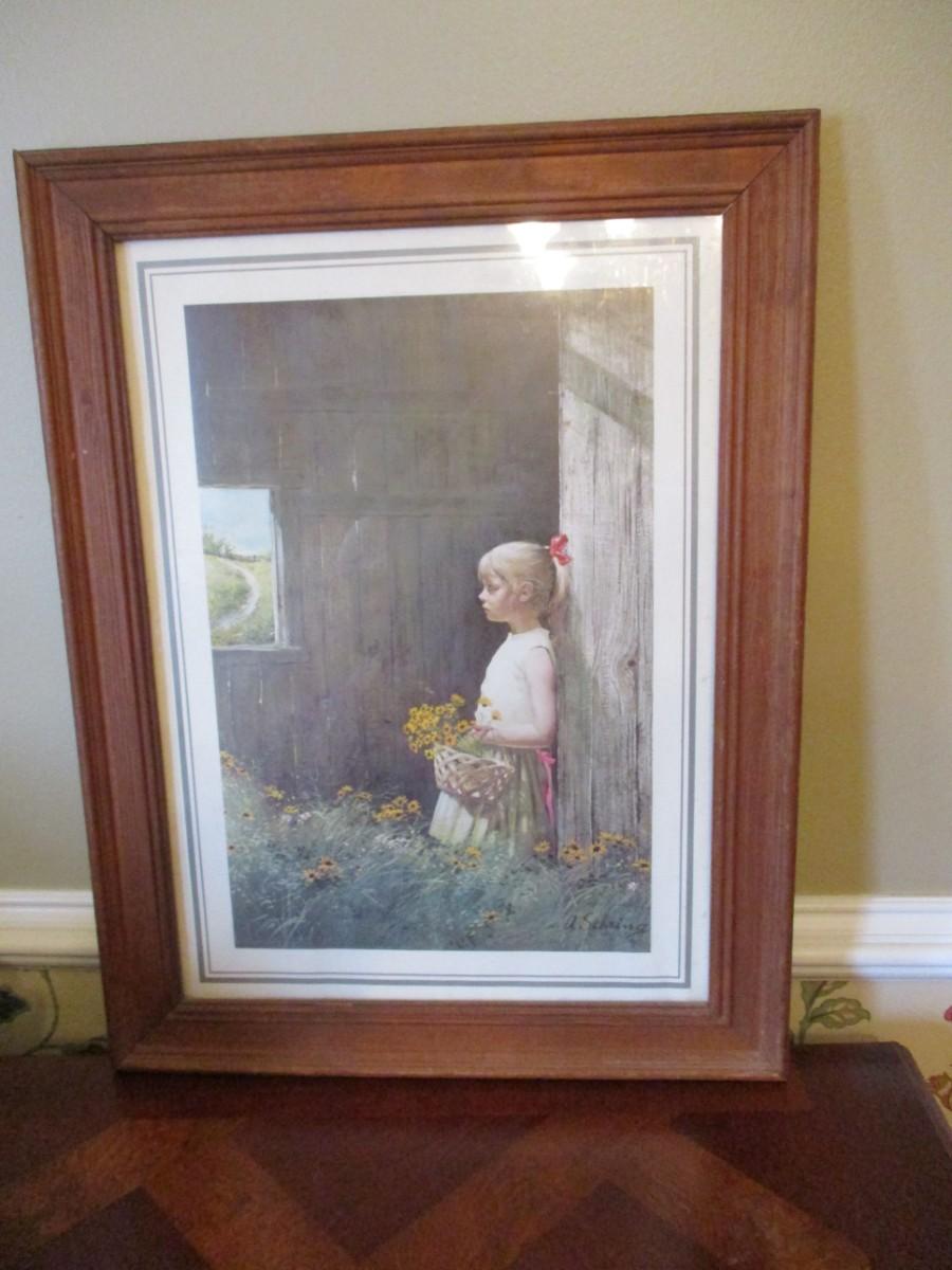 Adolph A Sehring Summer Daydream Litho Print Wood Framed Art 1975 Girl Flowers 19 1/2" x  25 1/2"