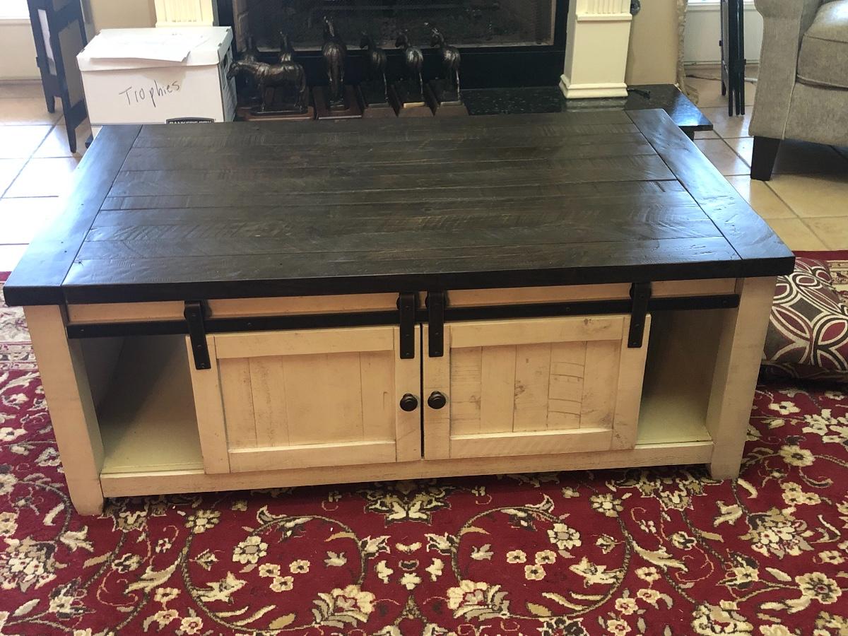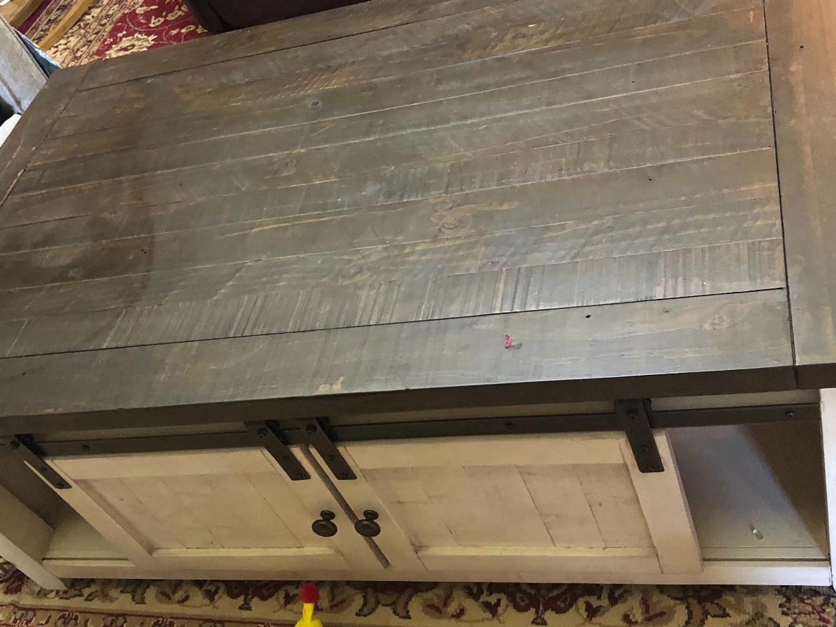 This is a stunning piece. Rarely used so it is like new. Plenty of space and barn doors slide back for additional space. Measures 50 x 30 x 19