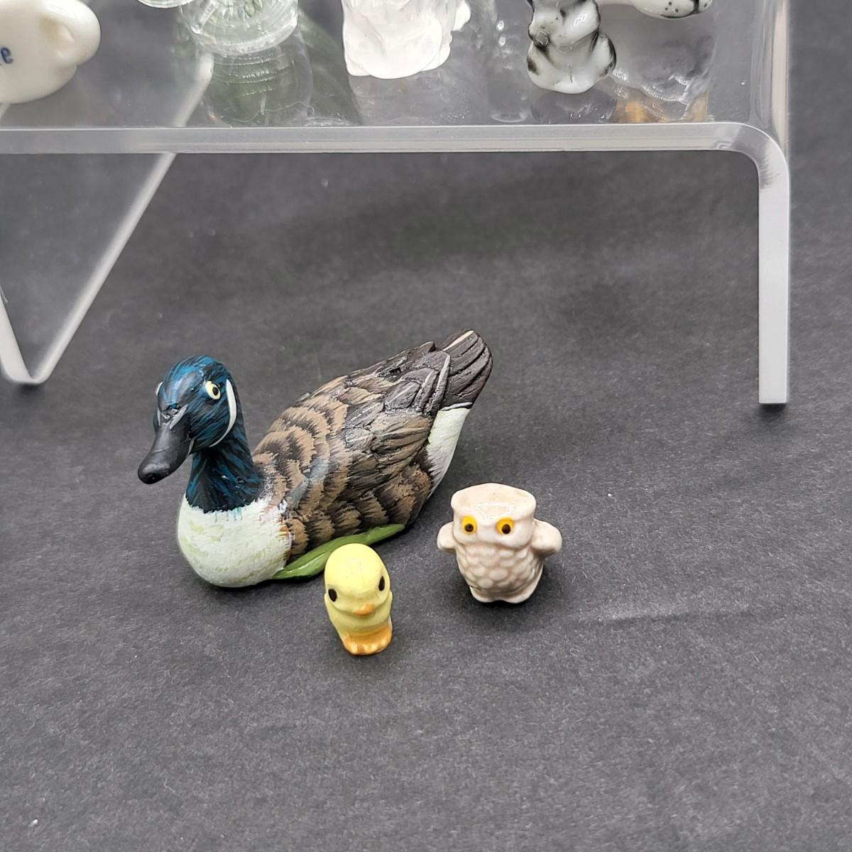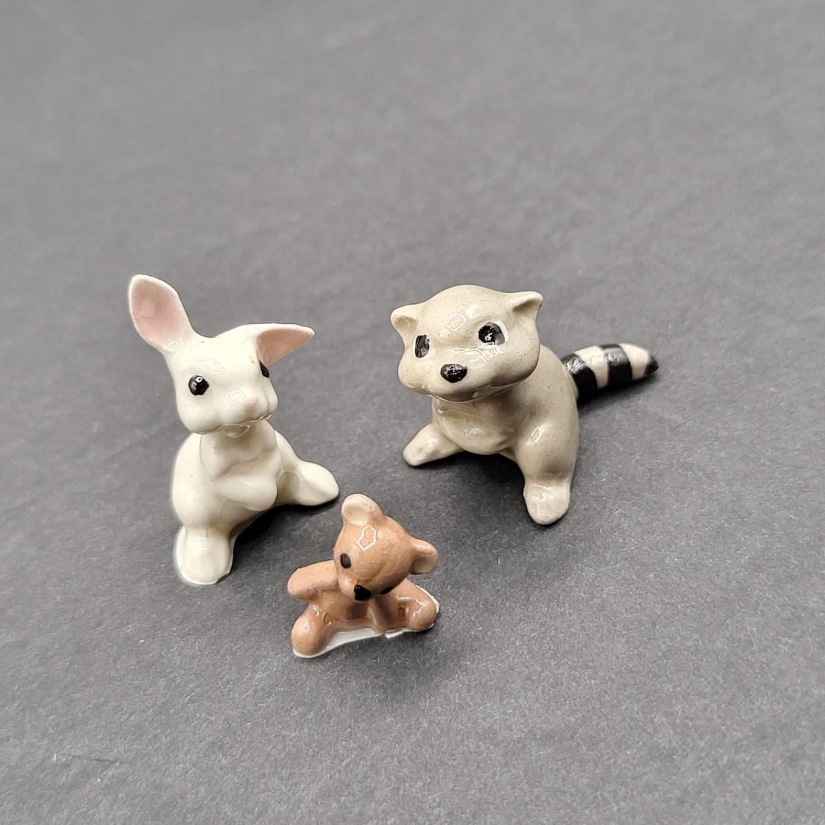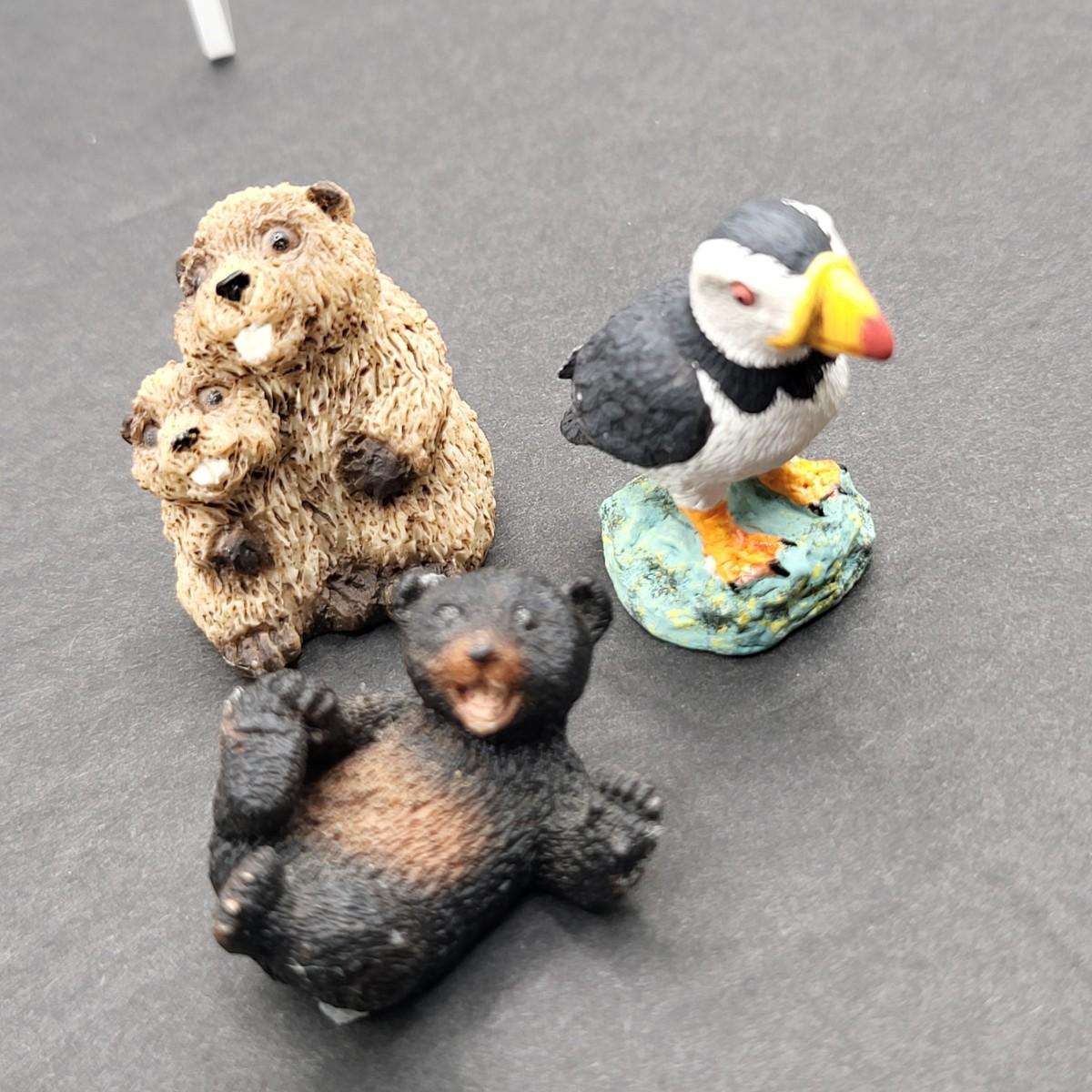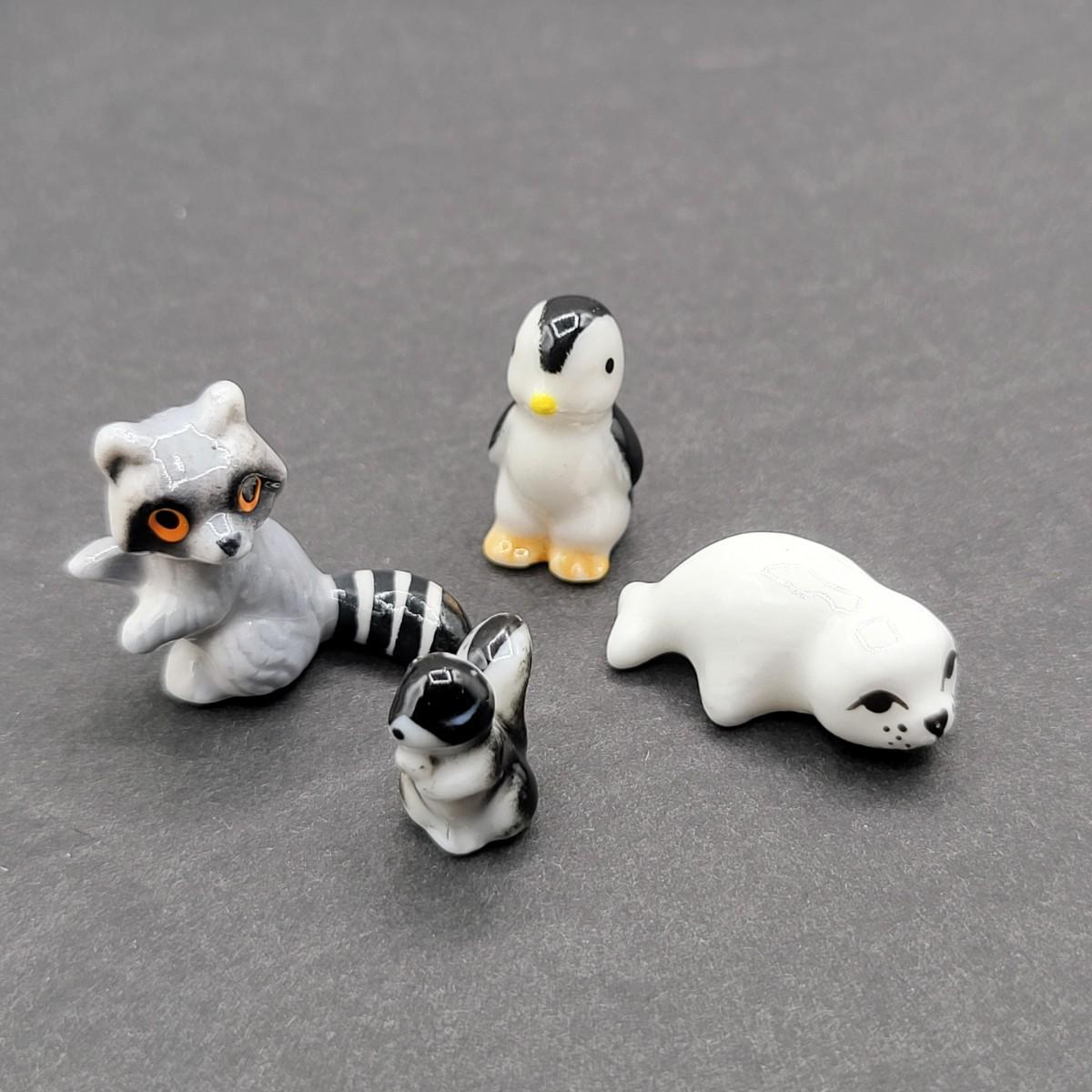 Dogs, cats, dolphins, seal, mice, rabbits, raccoon, birds, frogs & more. Glass, porcelain, resin, brass. Smallest one measures 1/4" and largest 1 1/2".