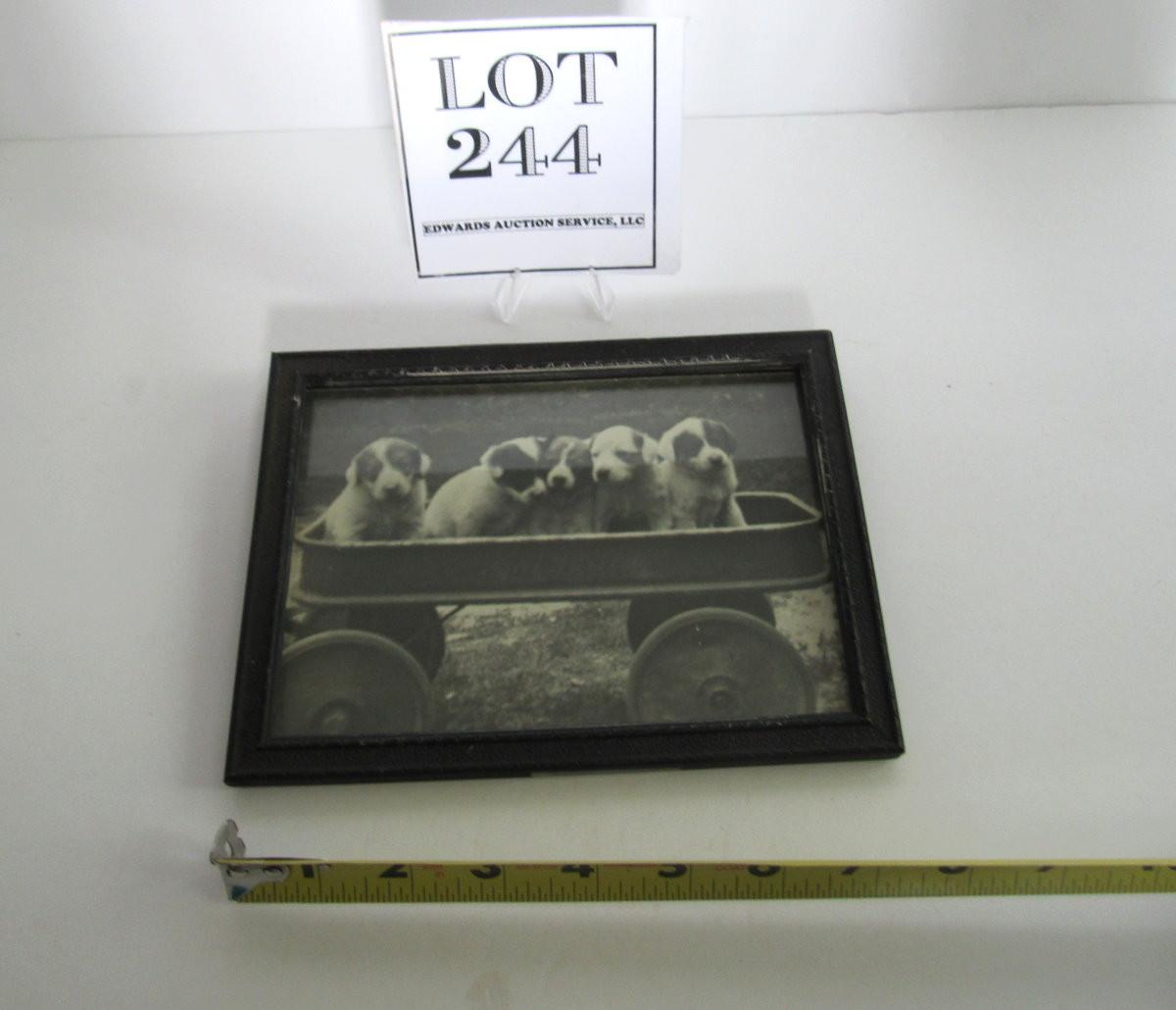 It needs re-framing, loose in frame. Very cute print. Shipping is available at shipping cost plus $5 per box handling fee. See our terms for all details. All sales final, no refunds or exchanges.