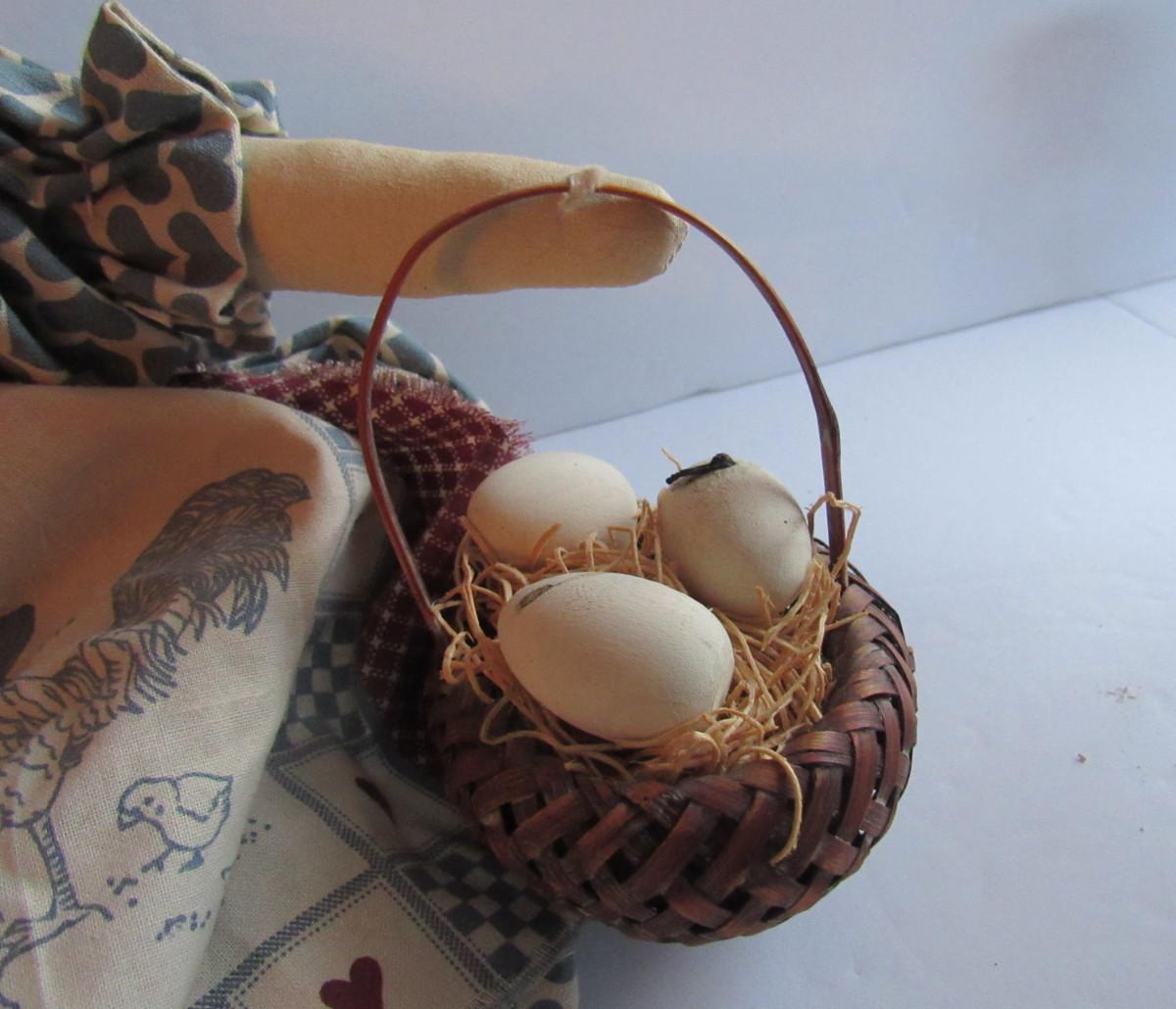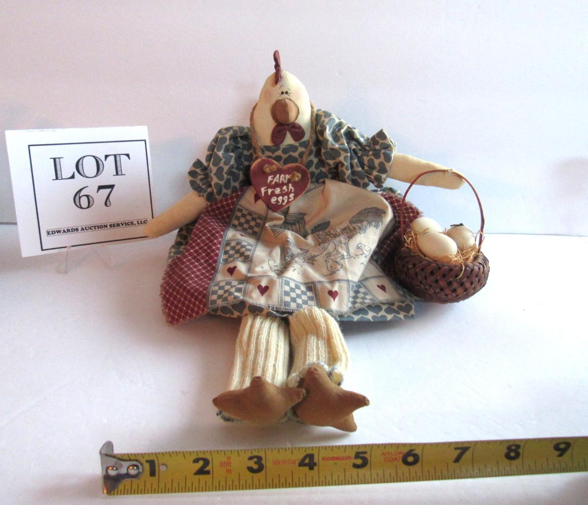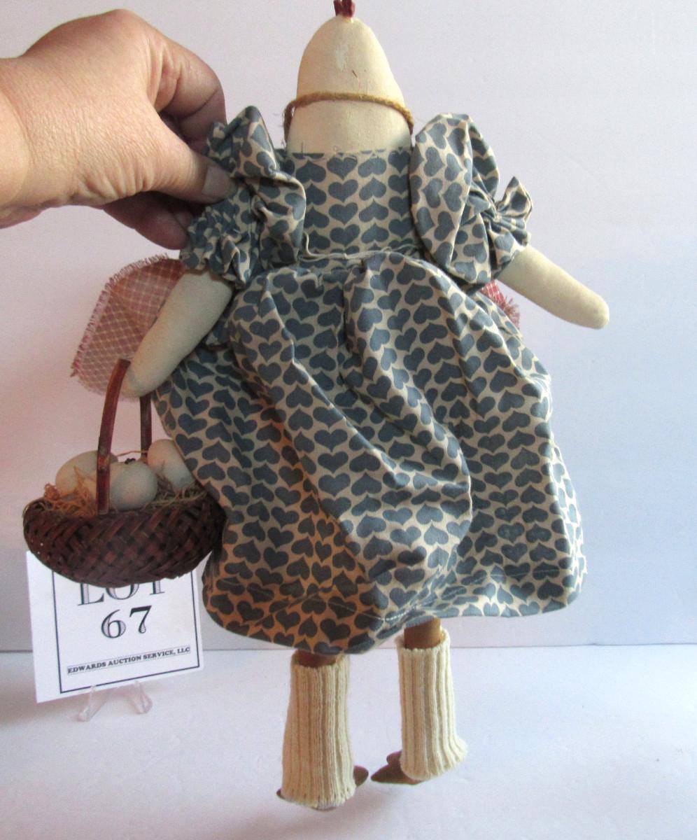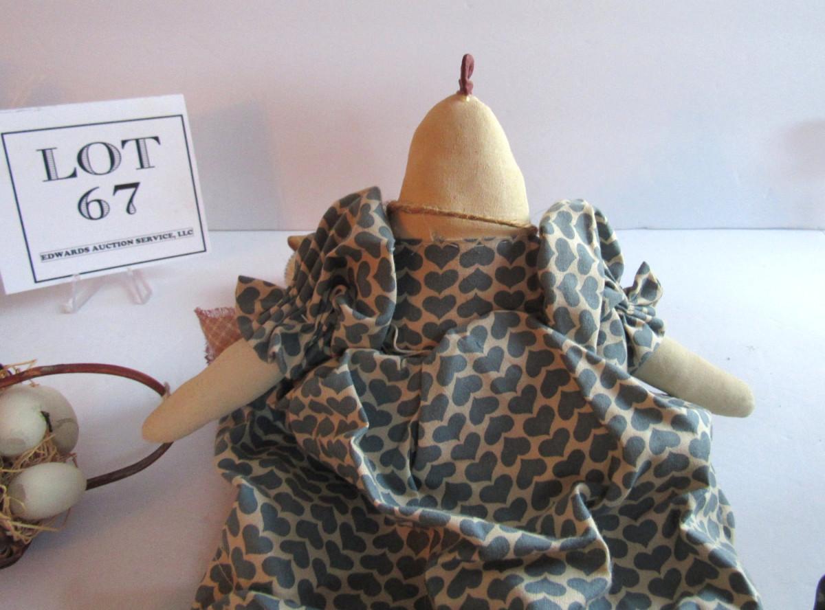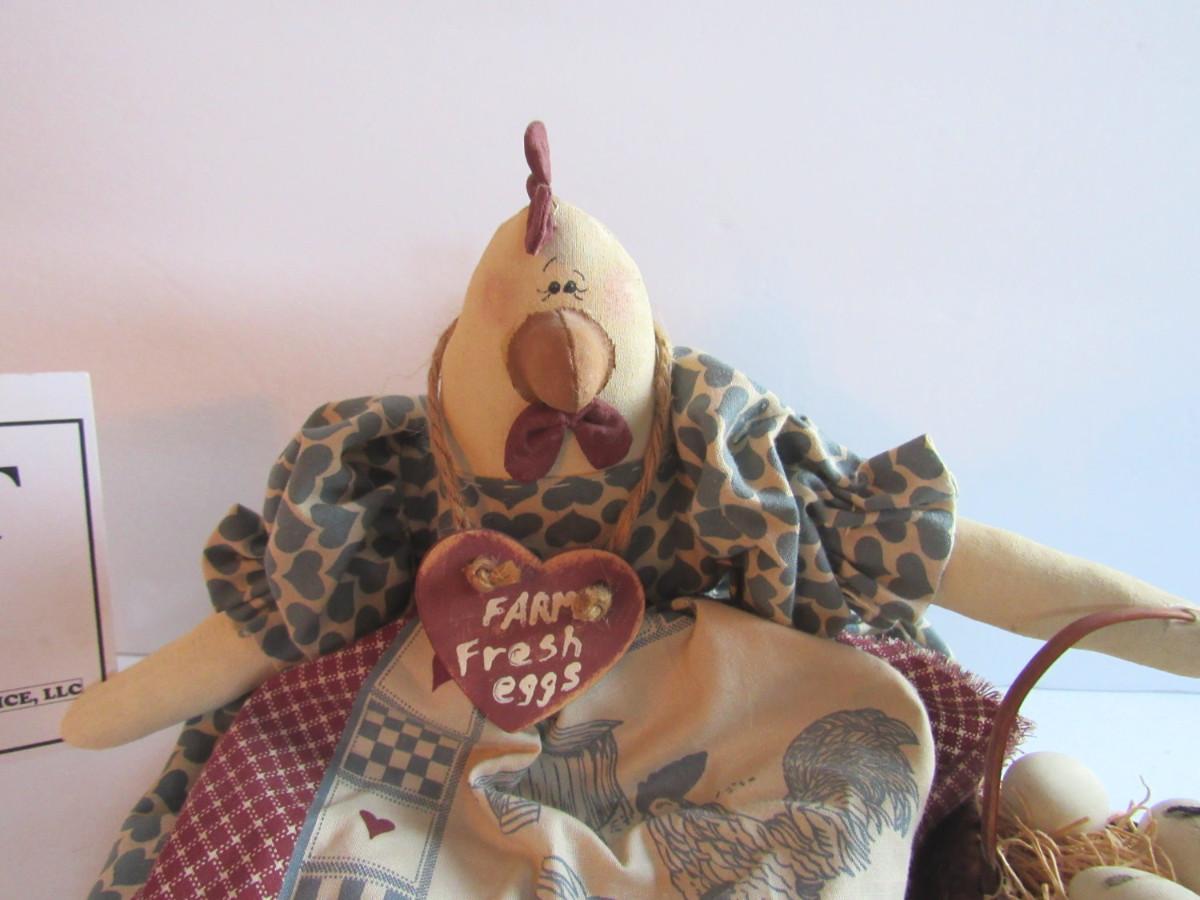 Nice shape. Looks so much cuter in person than in photos. She is a shelf sitter and has her little basket of eggs. Too cute. Mostly made of fabric. Shipping is available at shipping cost plus $5 per box handling fee. See our terms for details.