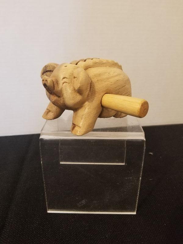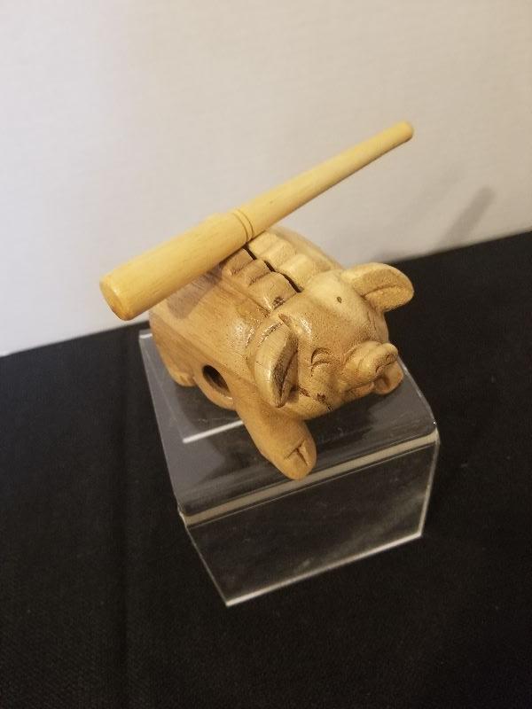 Adorable Hand Carved Wooden Carved Musical Pig - #30-A