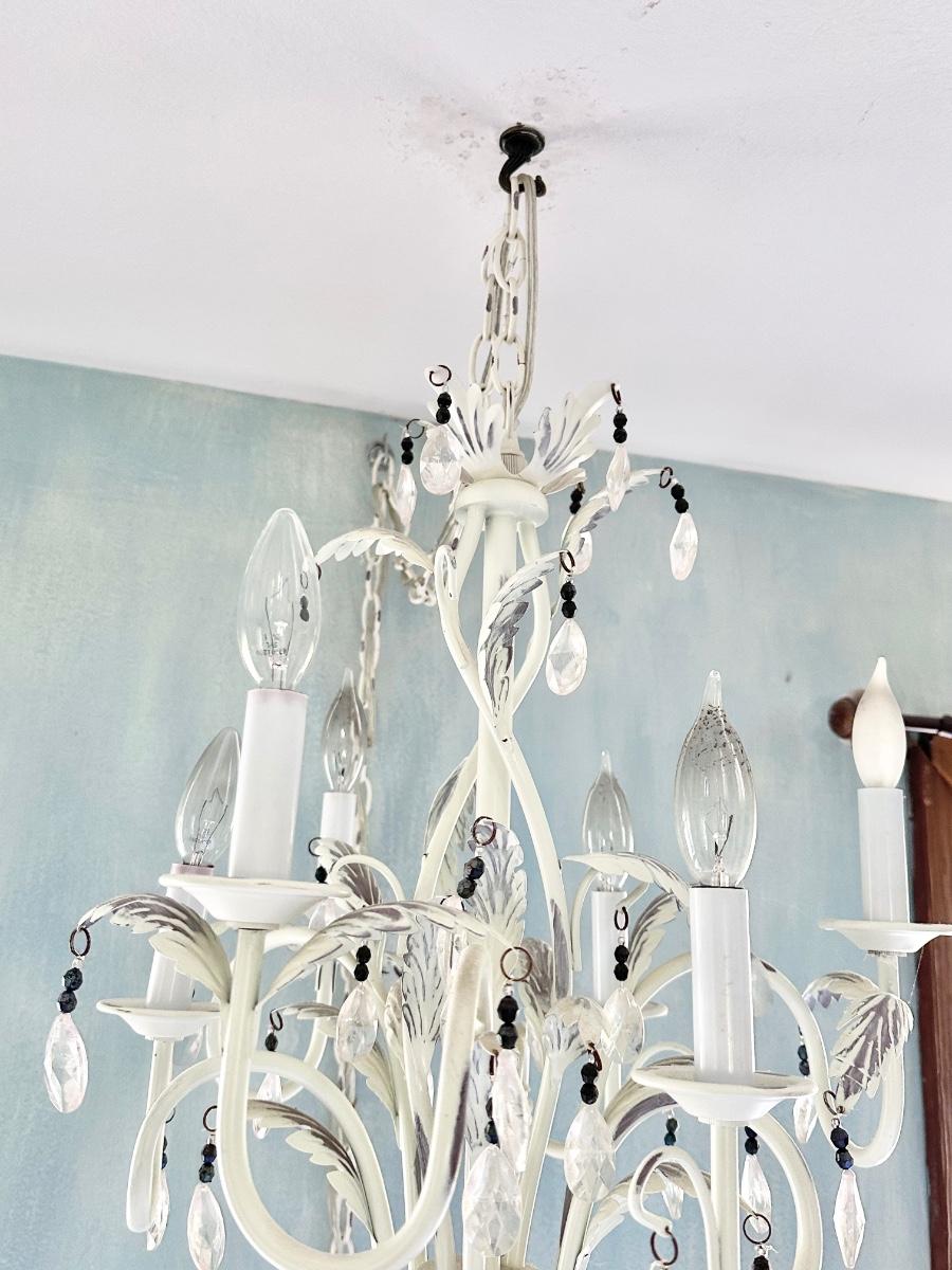 Has approximately 9ft chain and plug in cord. ~ Has a flip switch on cord see photo ~ hanging crystals are plastic. ~ 24" H x 16" W