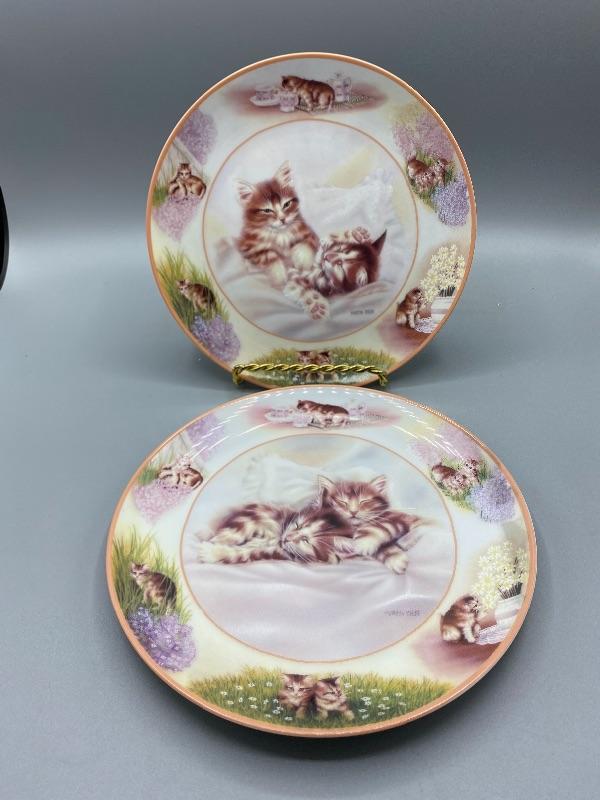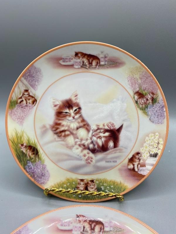 Pair of kitten collector plates by Martin Rien. 8" plates. Limited edition, First and second of the Paws in Action series.