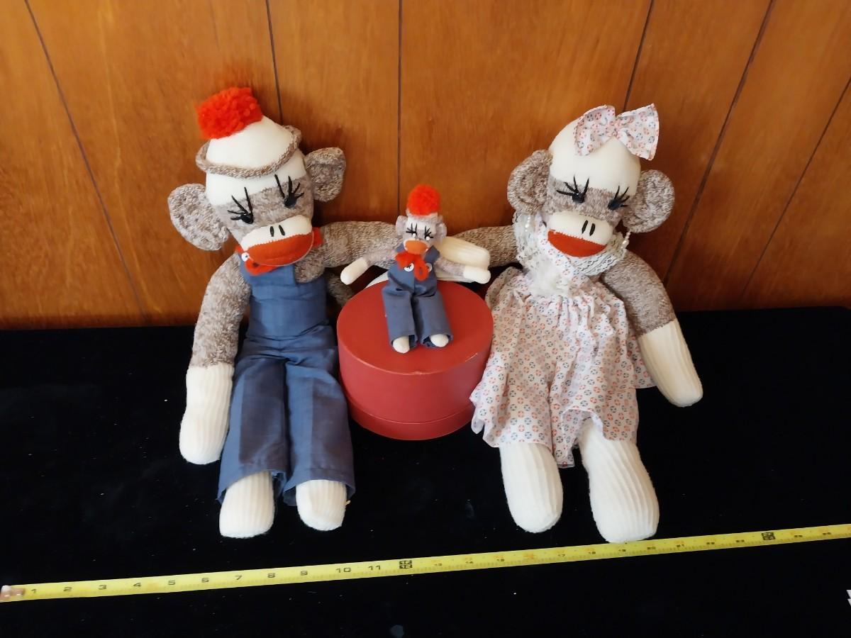 ADORABLE MOM, DAD AND BABY SOCK MONKEYS