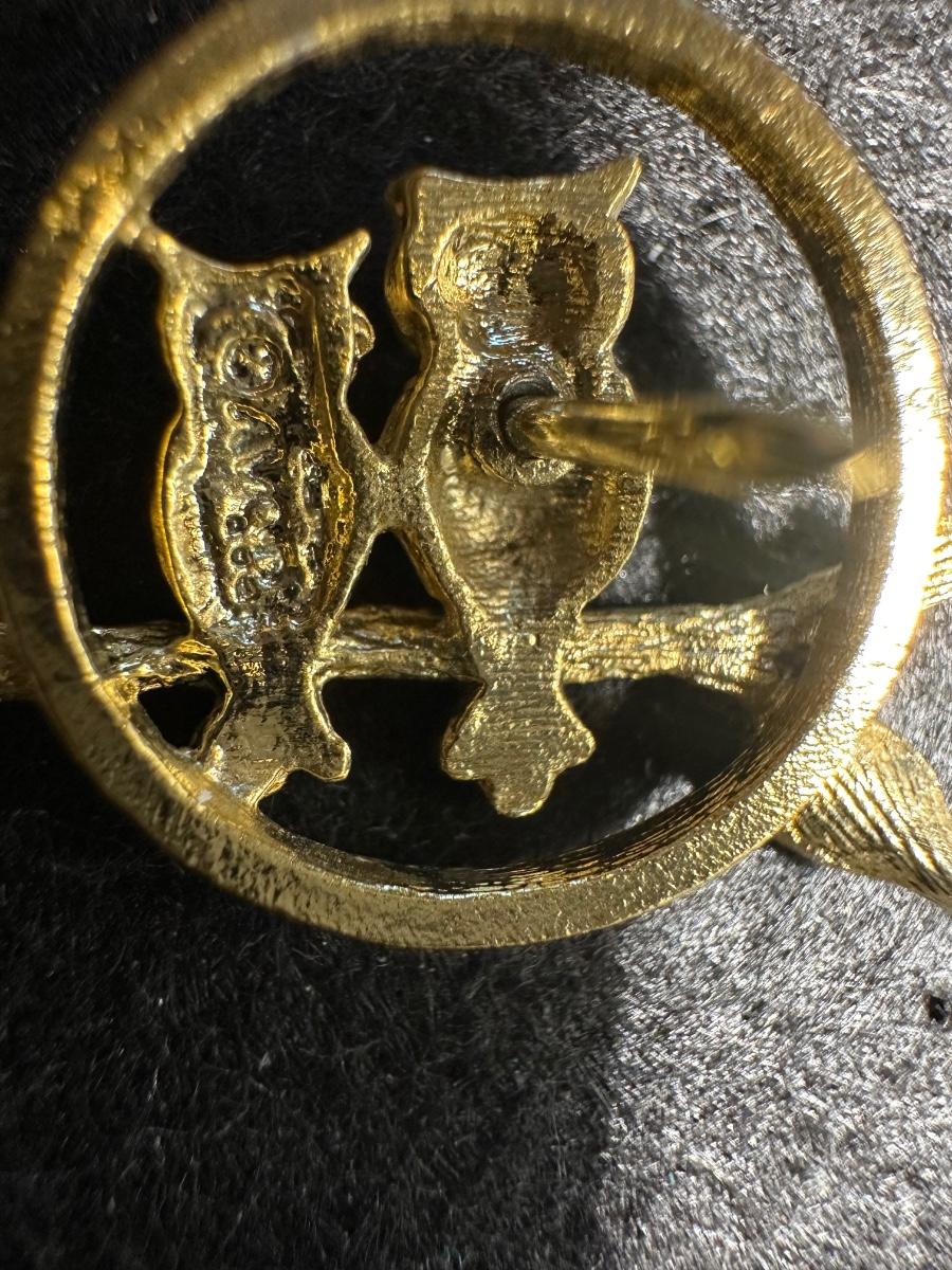 Adorable Vintage Avon signed two owls branch pin