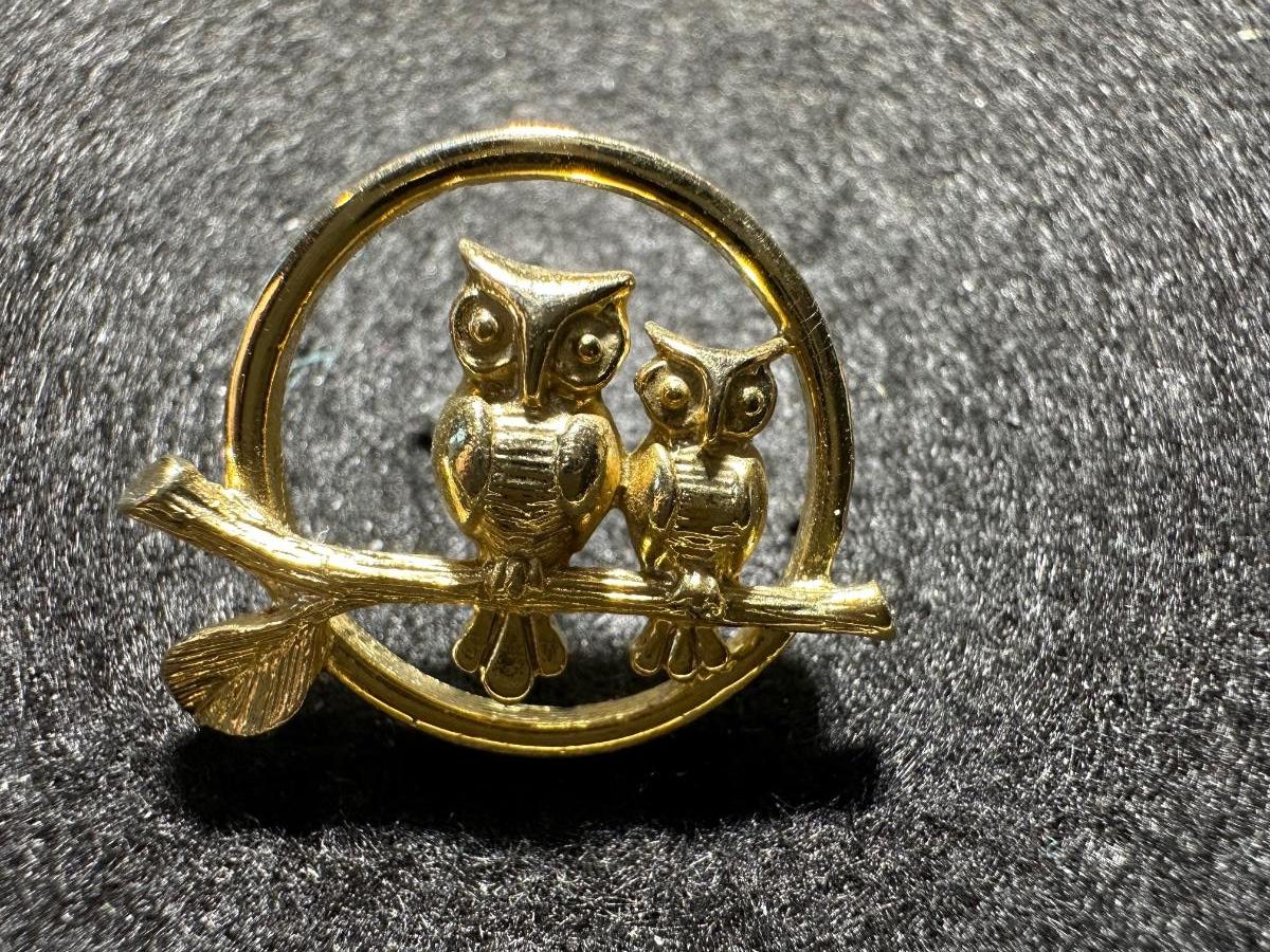 Adorable Vintage Avon signed two owls branch pin