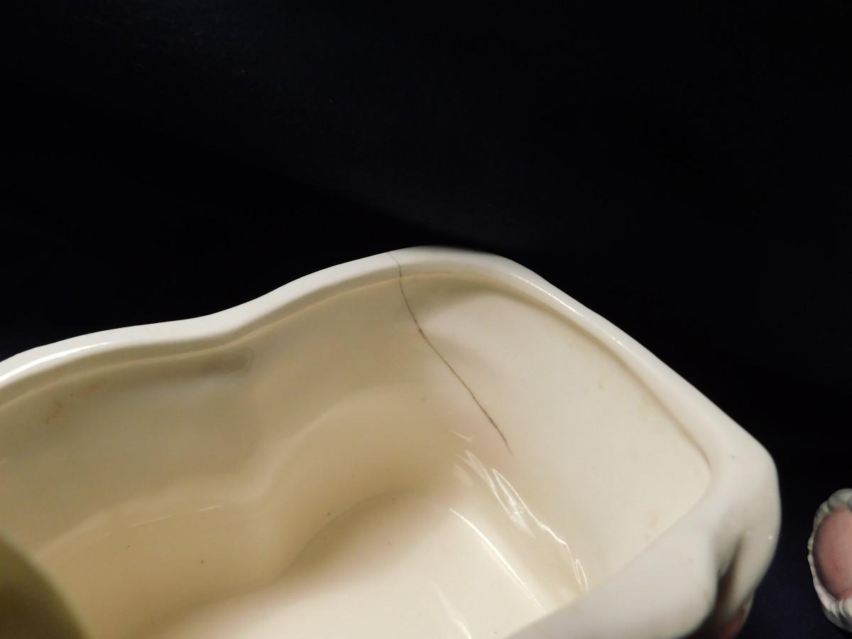 THERE IS A STRESS CRACK IN THE RUBENS PLANTER, PROBABLY THE OLDEST PLANTER IN THIS LOT. CRACK IS PICTURED
