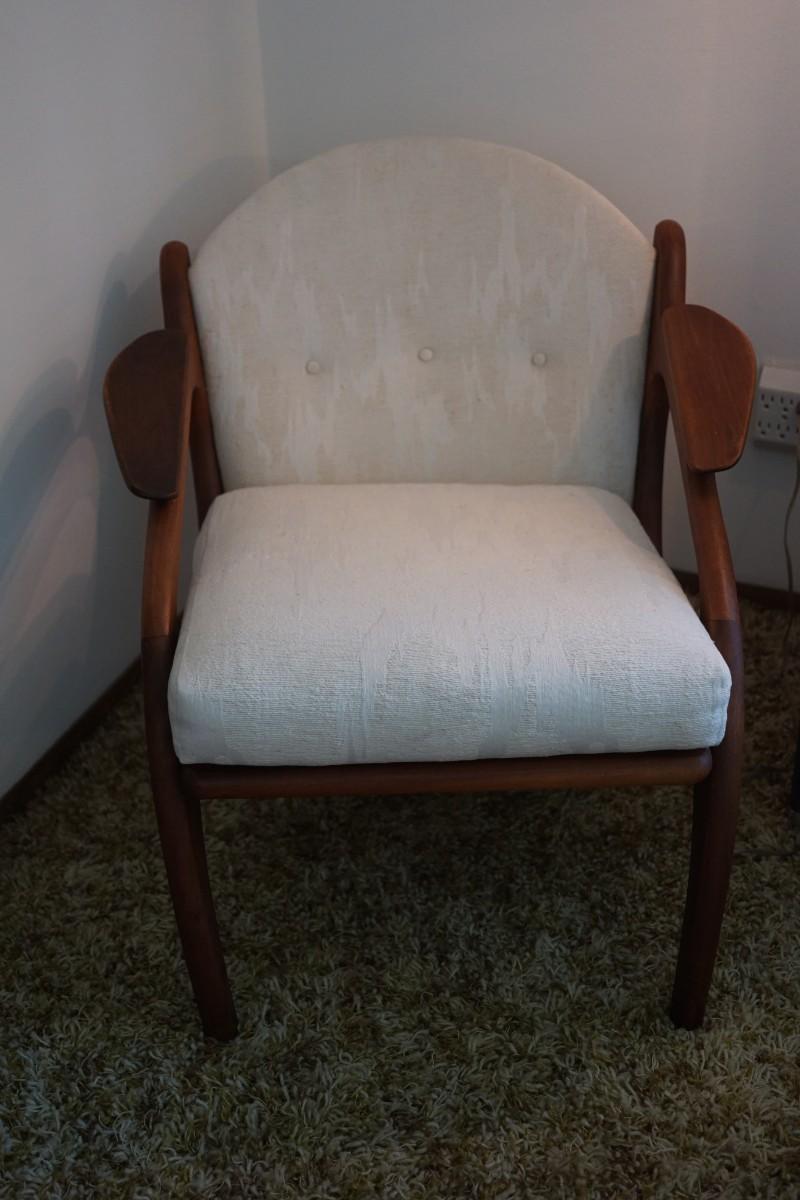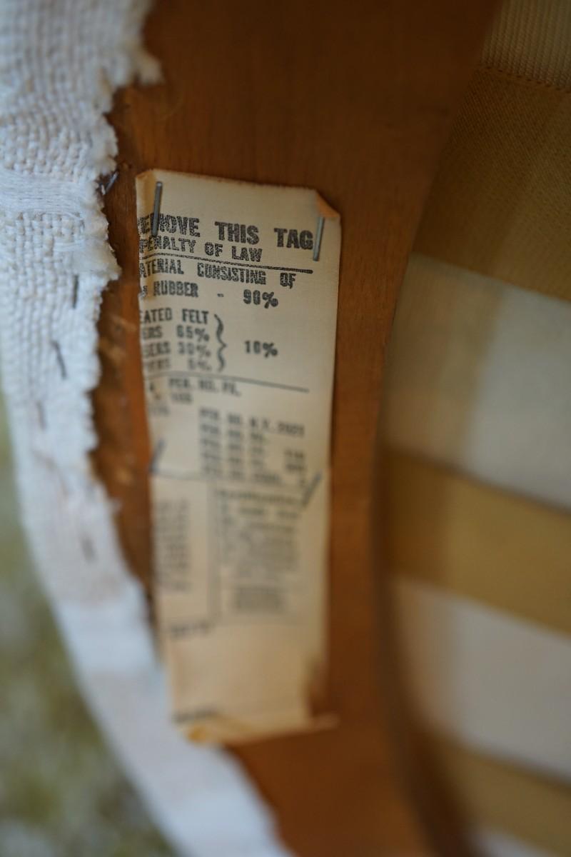 condition the left arm of chair needs some light cleaning. it is dark from use. The upholstery has very slight area of small dot staining? soiling. Not bad. clean. and well cared for.