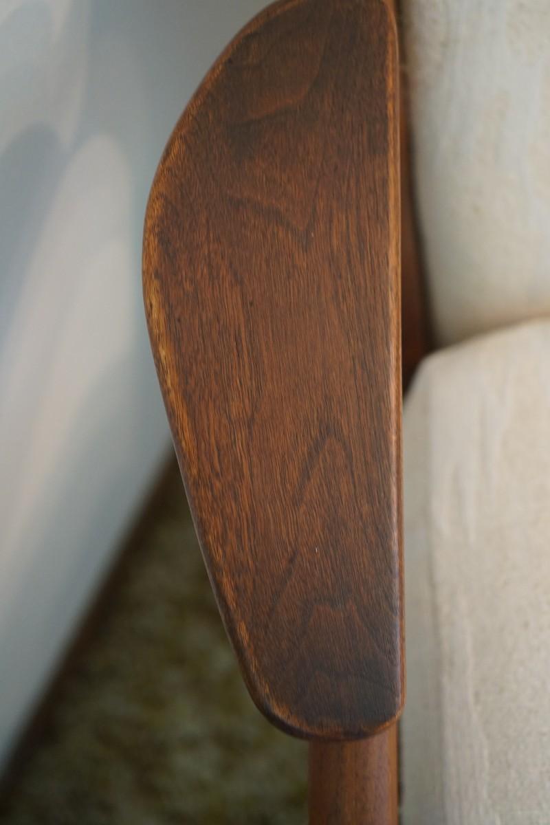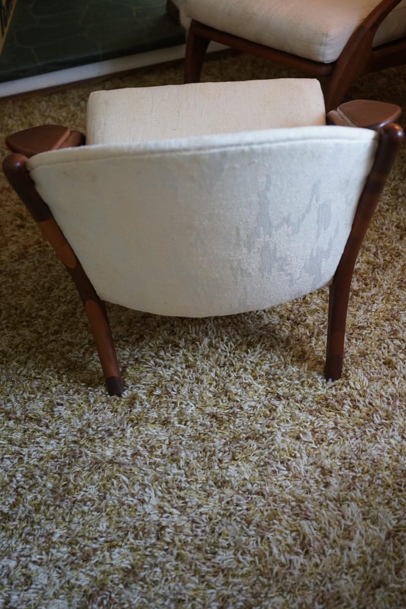 this is one of the pair of Adrian Pearsall designs. Walnut frame. . Upholstery is a white and ivory textured blend.