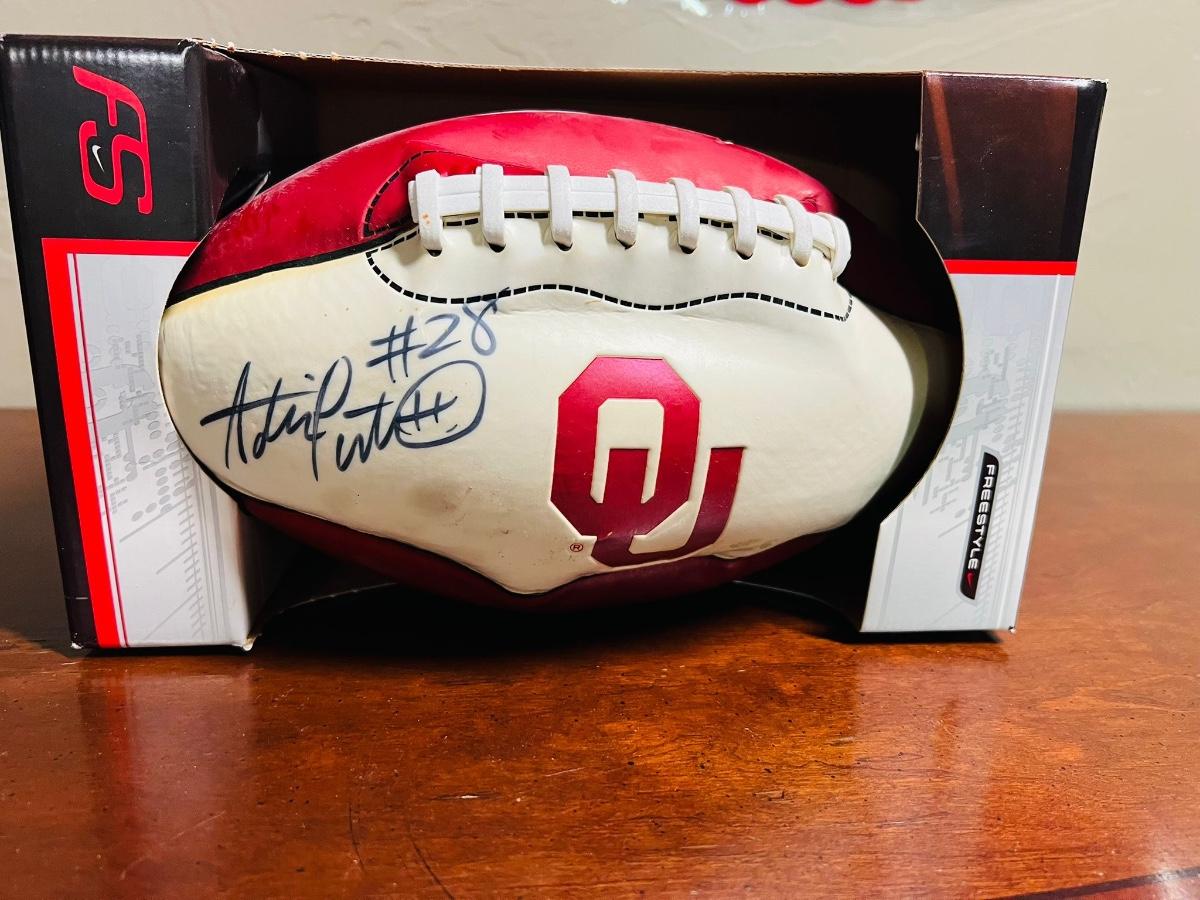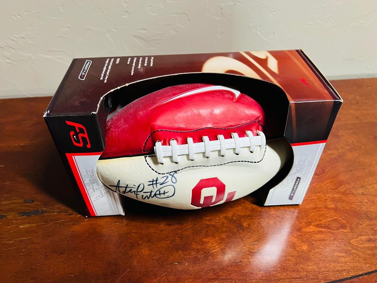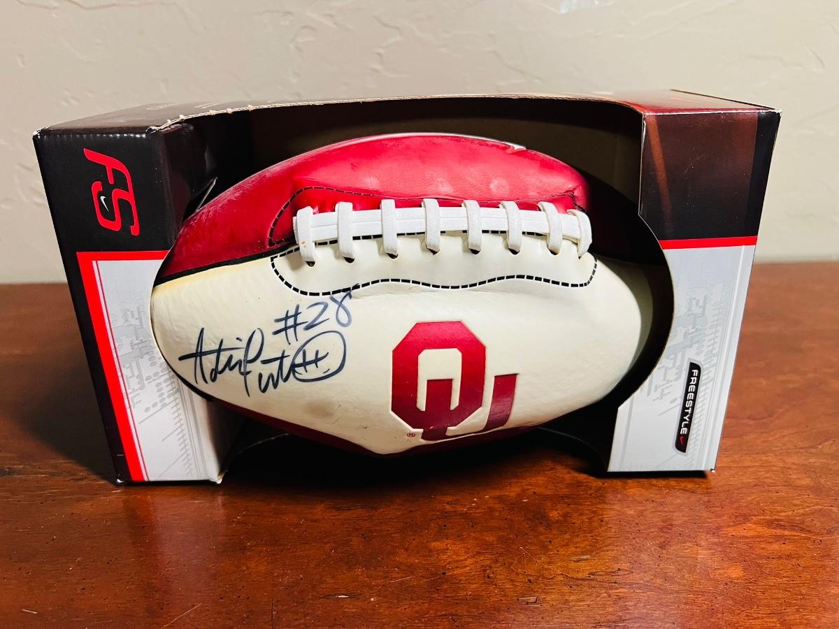 Original OU Football Signed by Adrian Peterson #28. Still in original box.