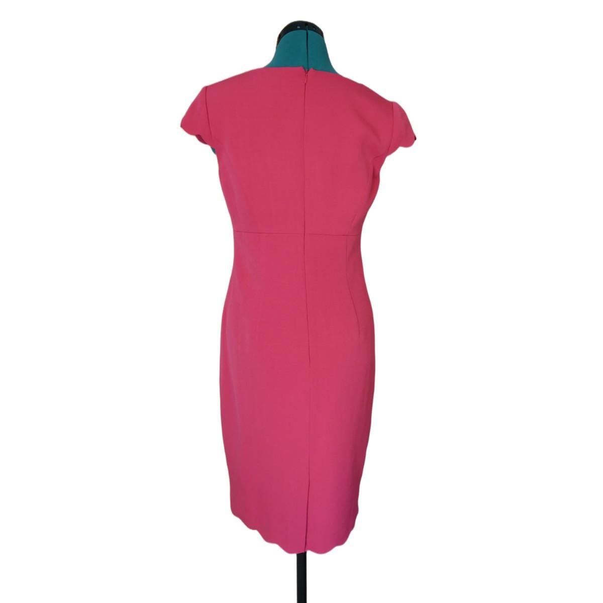 Pink Adrianna Papell dress in women's size 4 with beautiful scalloped trim. Like new condition, no issues found.