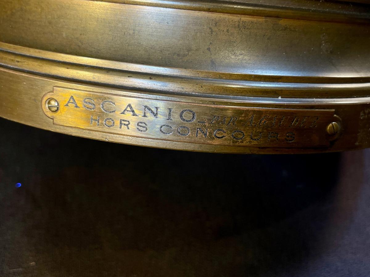 The plaque reads "ASCANIO A Gaudez HORS-CONCOURS", which indicated that Gaudez was able to present his models at Salon while bypassing the required jurying for the exhibition.ҬҬ He won a third class medal at the Salon of 1884 and the first class medal in 1881. His works are held in major museums around the world including Valence, Louviers and Clermont-Ferrand