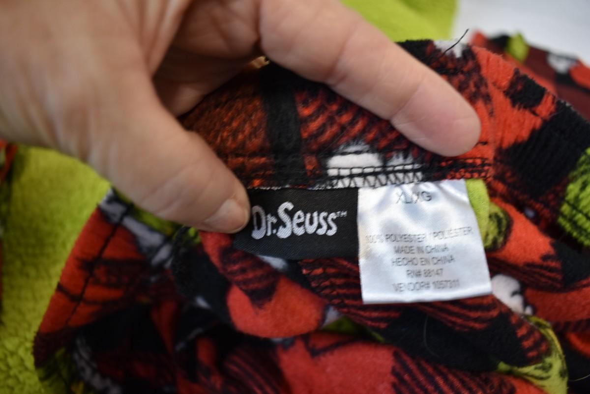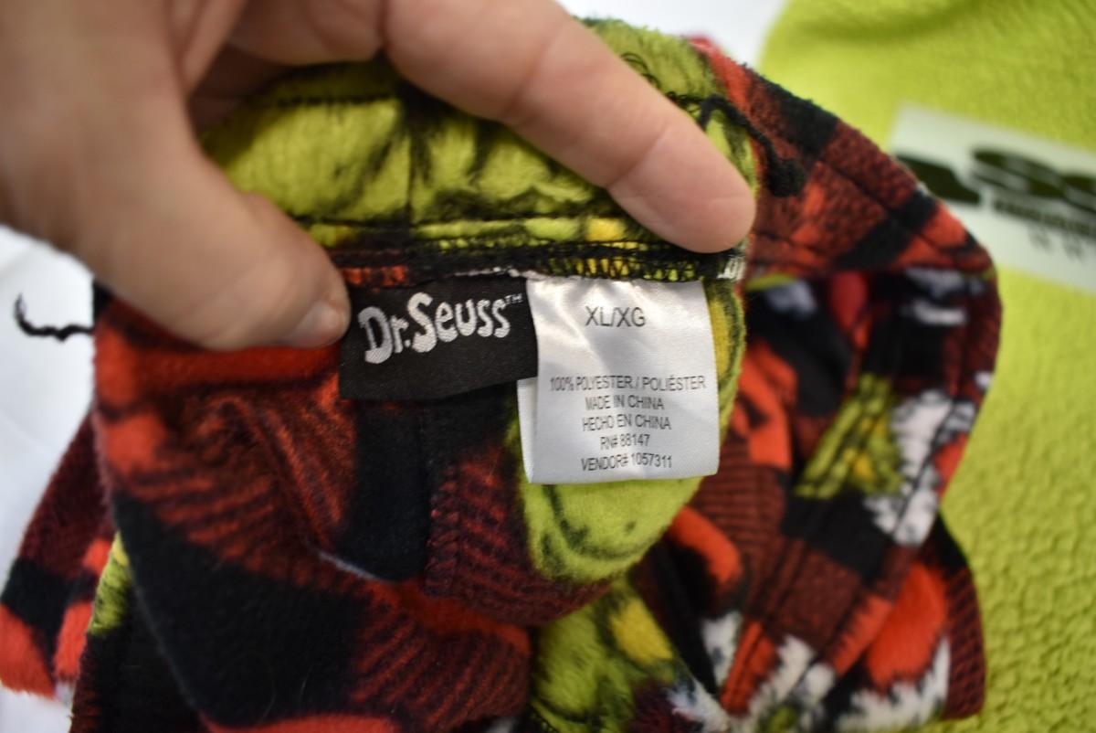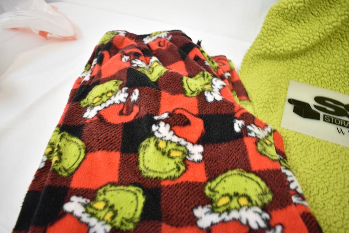 Adult Dr. Seuss Grinch PJs: 2 prs pants size XL, 1 hooded onesie, no feet, size S