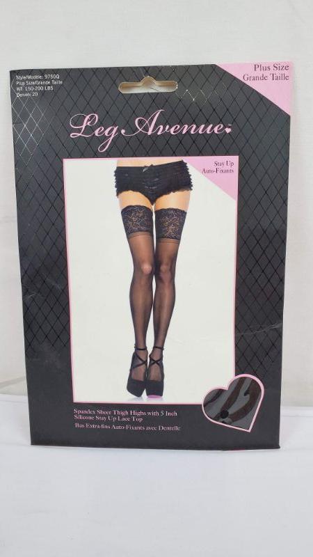 Adult Plus Size Black Spandex Sheer Thigh Highs - New