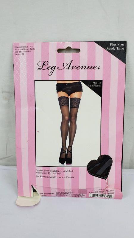 Adult Plus Size Black Spandex Sheer Thigh Highs with 5" Silicone Stay up Lace Top, Weight 150-200 Pounds - New