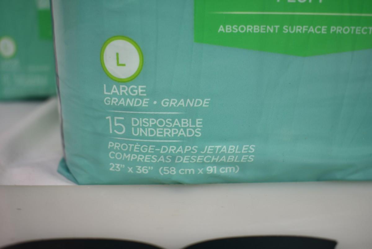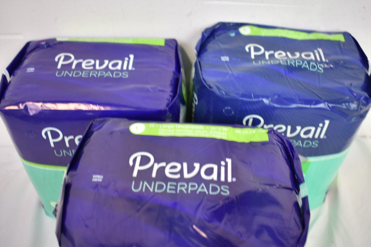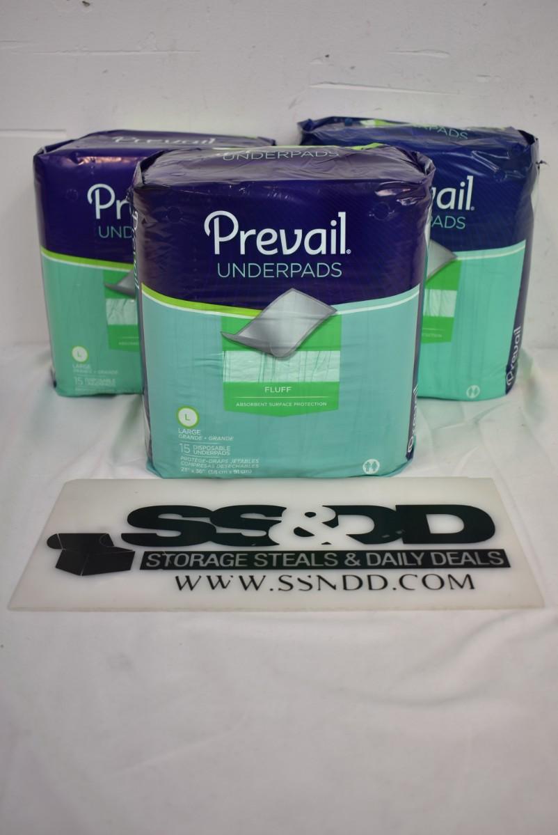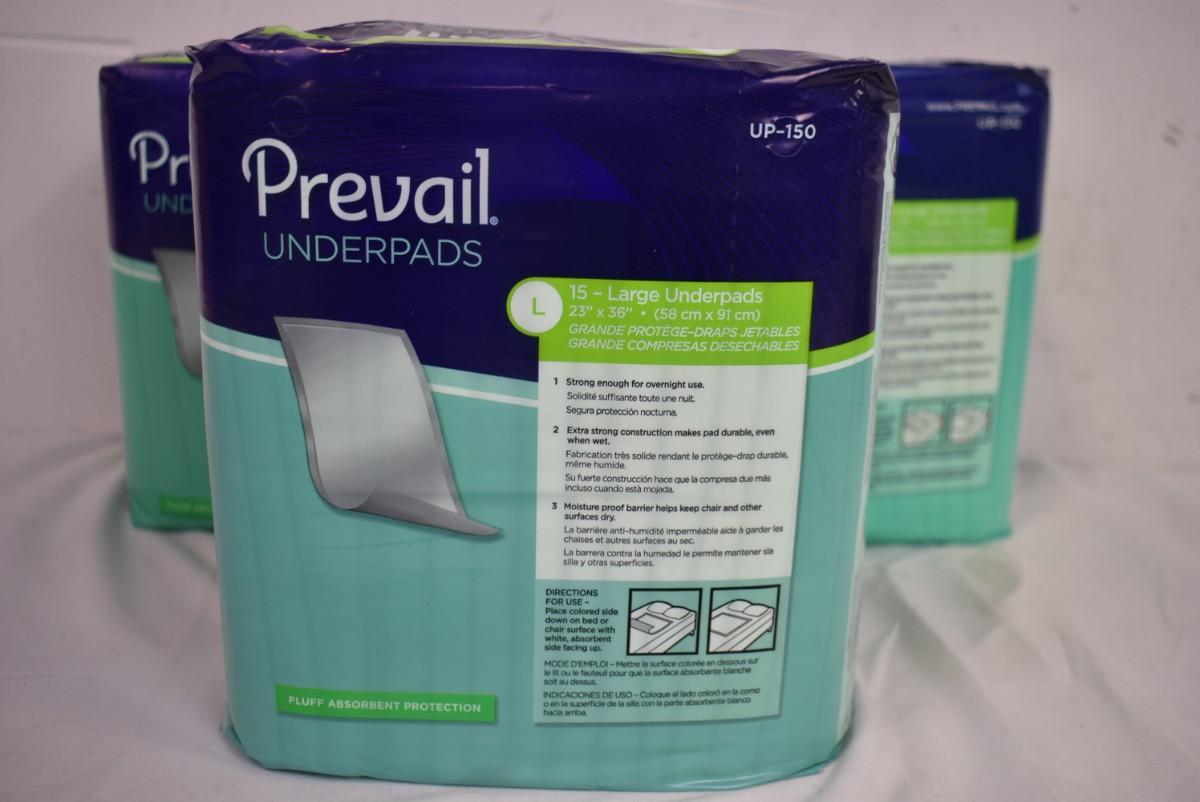 Adult Prevail Underpads, Large Size: 3 pkgs/15 Disposable Pads in Each - New