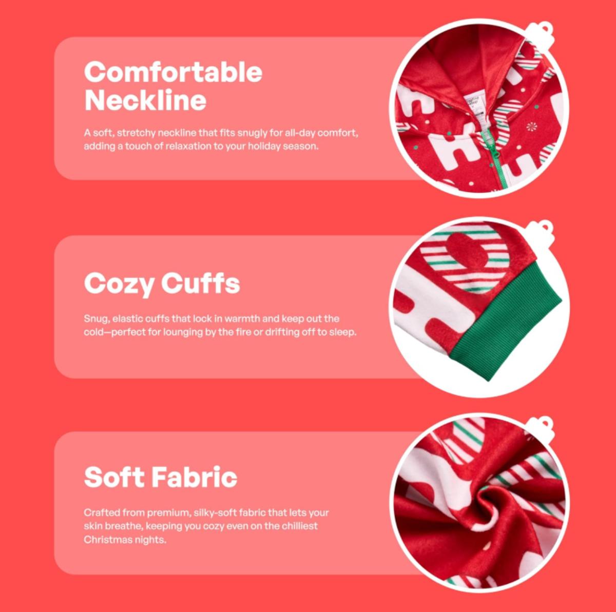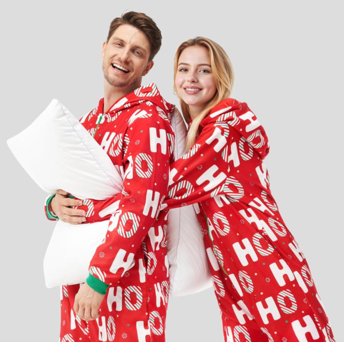 Adult Size Small (S) - Giggling Getup Adults Men Christmas Pajamas with Hood, HO HO HO Christmas Pajamas for Holiday Parties, Events, Christmas Eve